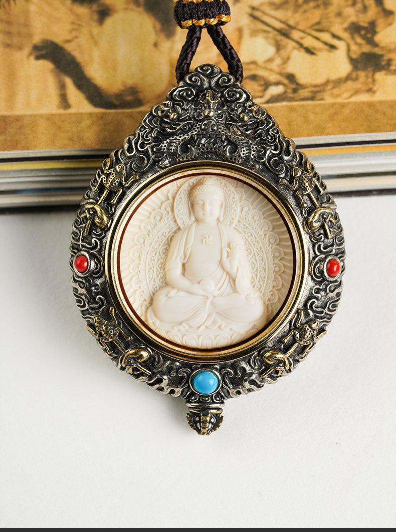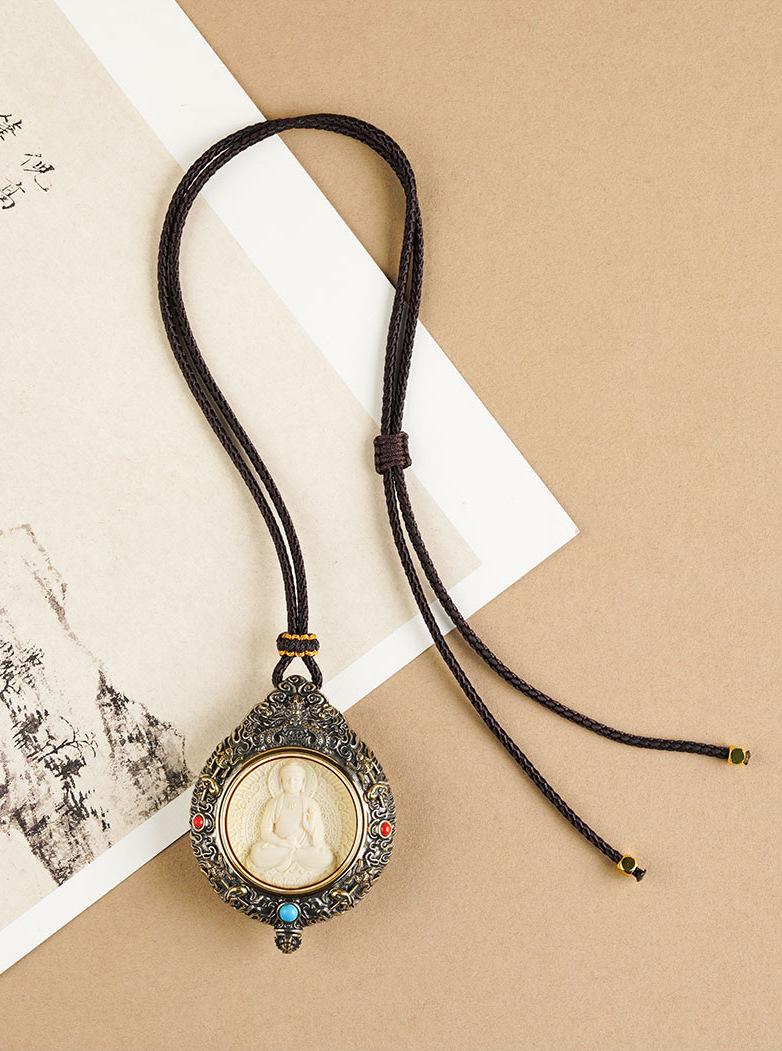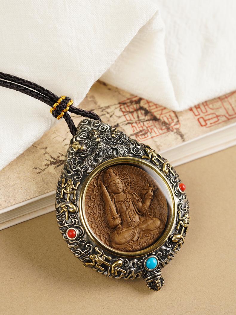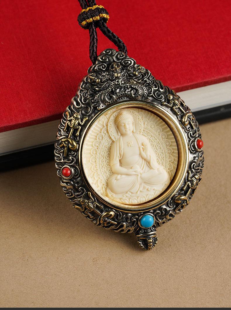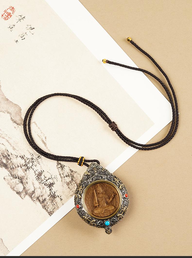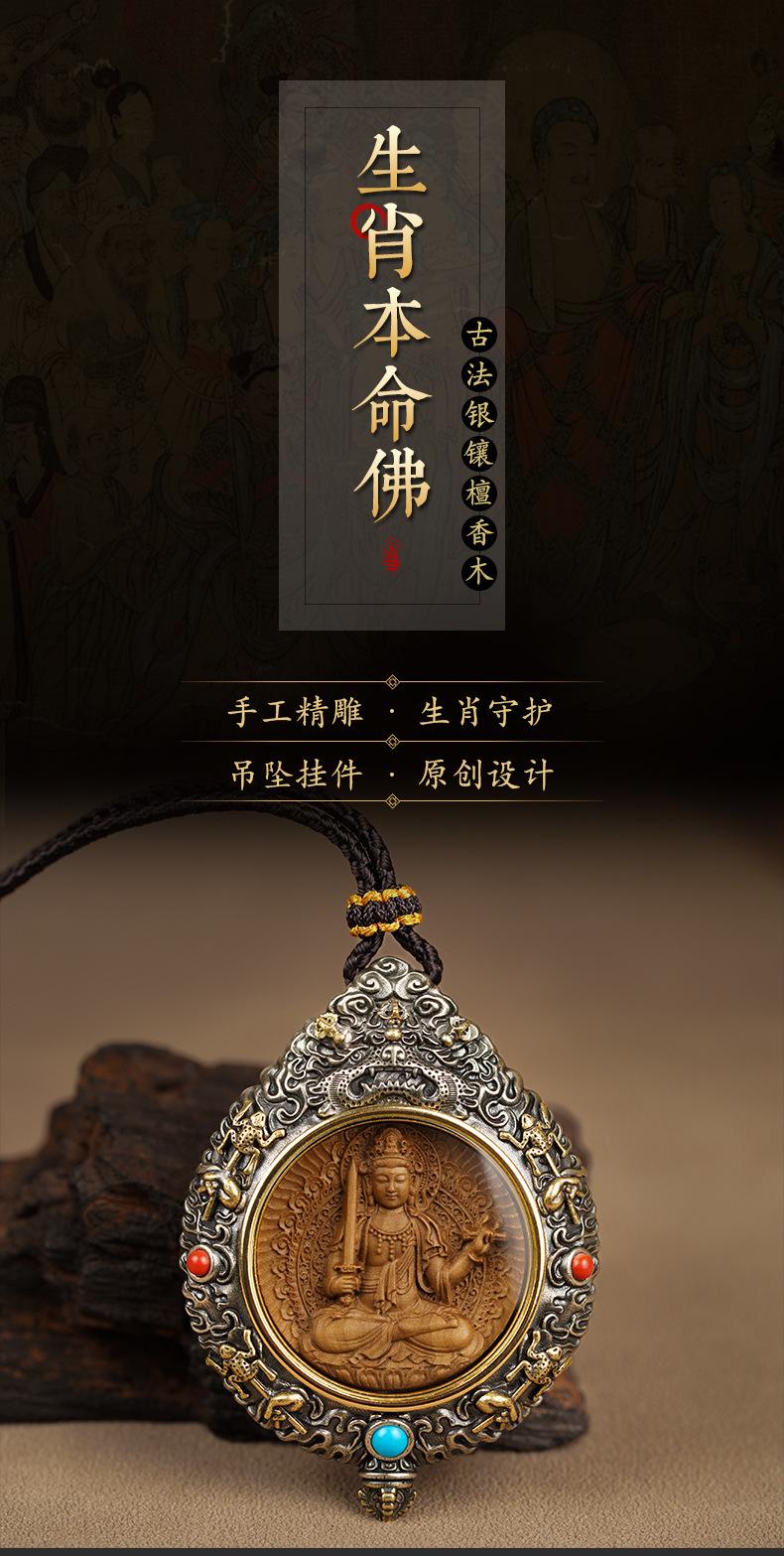 Colgante colgante de sándalo con incrustaciones de plata Xizang 12 Zodíaco Buda del nacimiento colgante colgante joyería gran potencial para Bodhisattva caballo