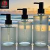 En stock, botella redonda de hombro de 300 ml/500 ml, botella de plástico PET para gel de ducha, botella de champú marrón.