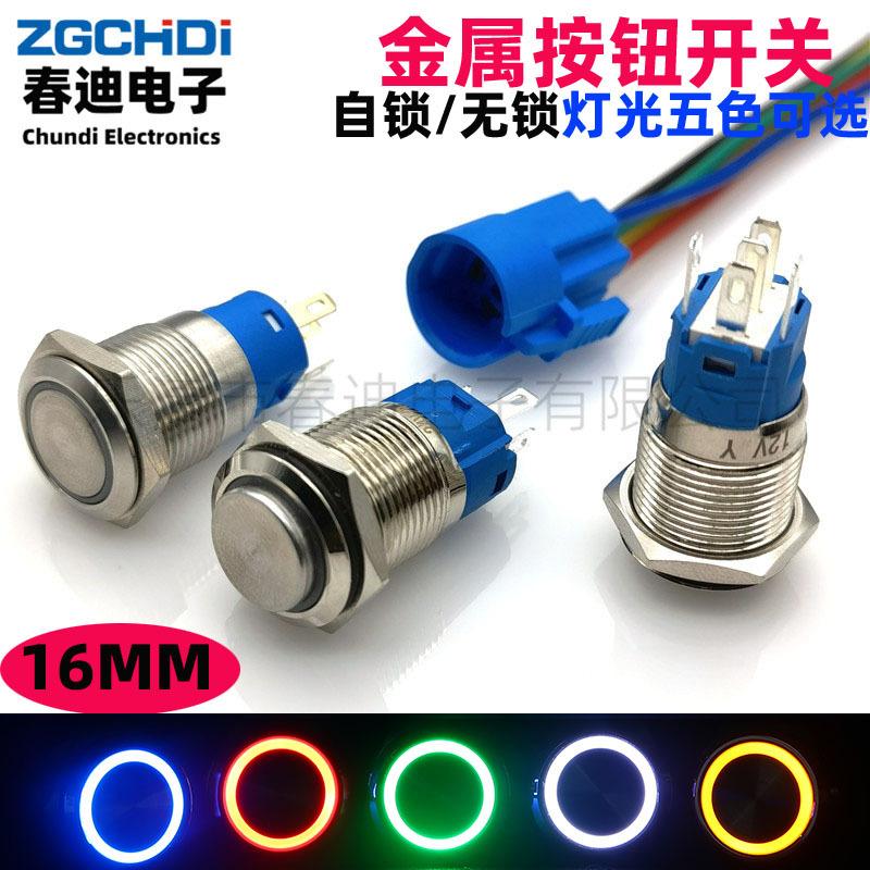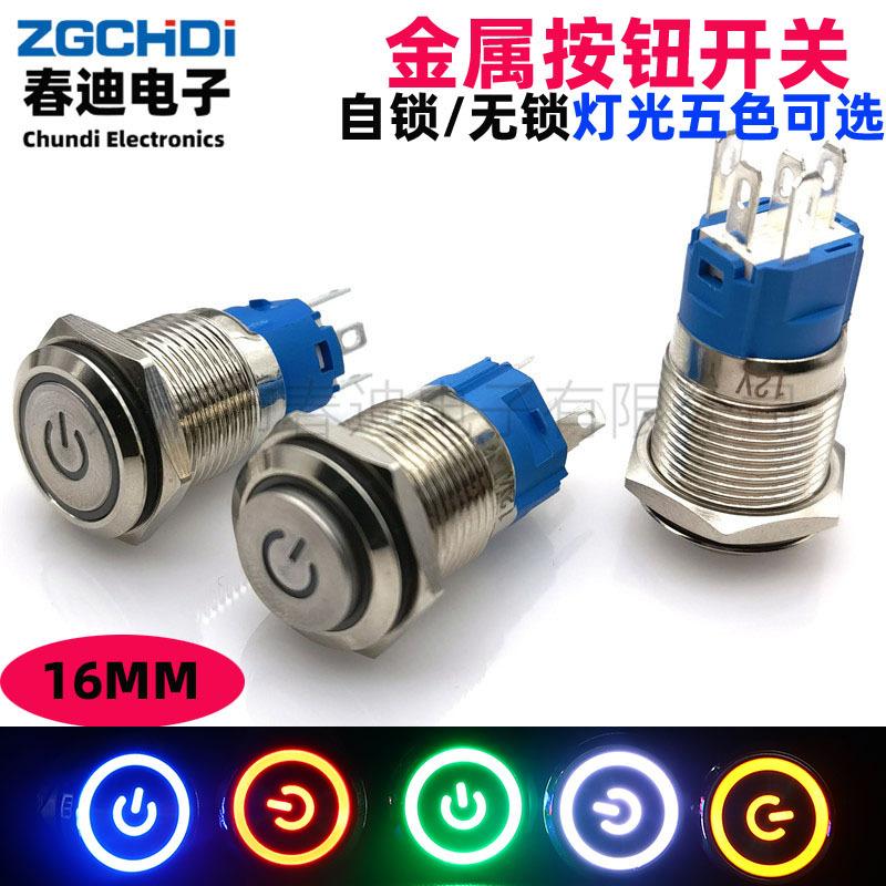 Interruptor de botón metálico de 16 mm, autobloqueante, autocompuesto, sin luz, para modificación de automóvil/computadora, interruptor de arranque de energía