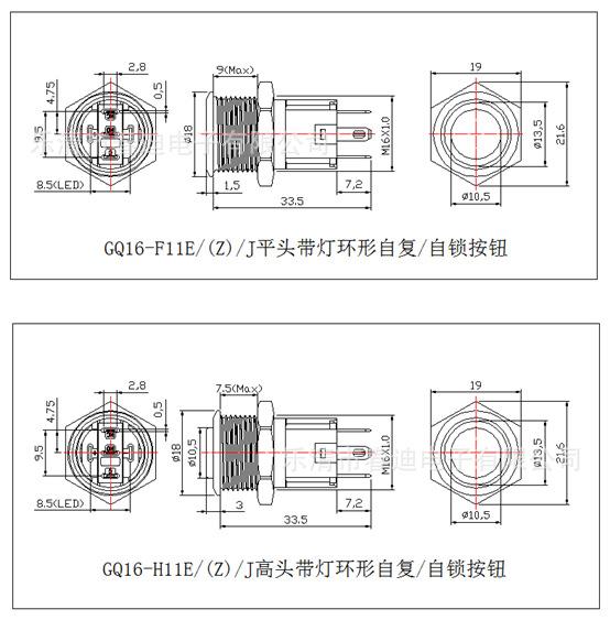 16mm flat head without lock without lamp, 16mm high head without lock without lamp, 16mm flat head self-lockin...