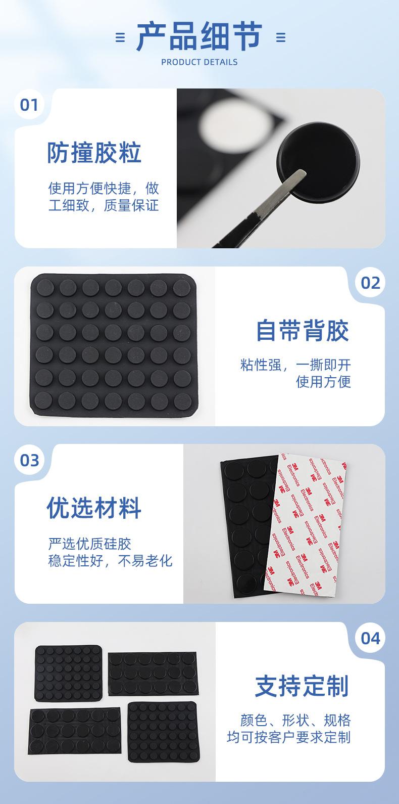Almohadilla de silicona esférica negra troquelada Dongguan para muebles, mesas y sillas, junta de silicona, amortiguación silenciosa, partículas antideslizantes anticolisión