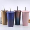 Taza de coche Big Mac personalizada con asa de acero inoxidable 304, taza de doble capa con aislamiento al vacío, taza portátil con pajita para oficina