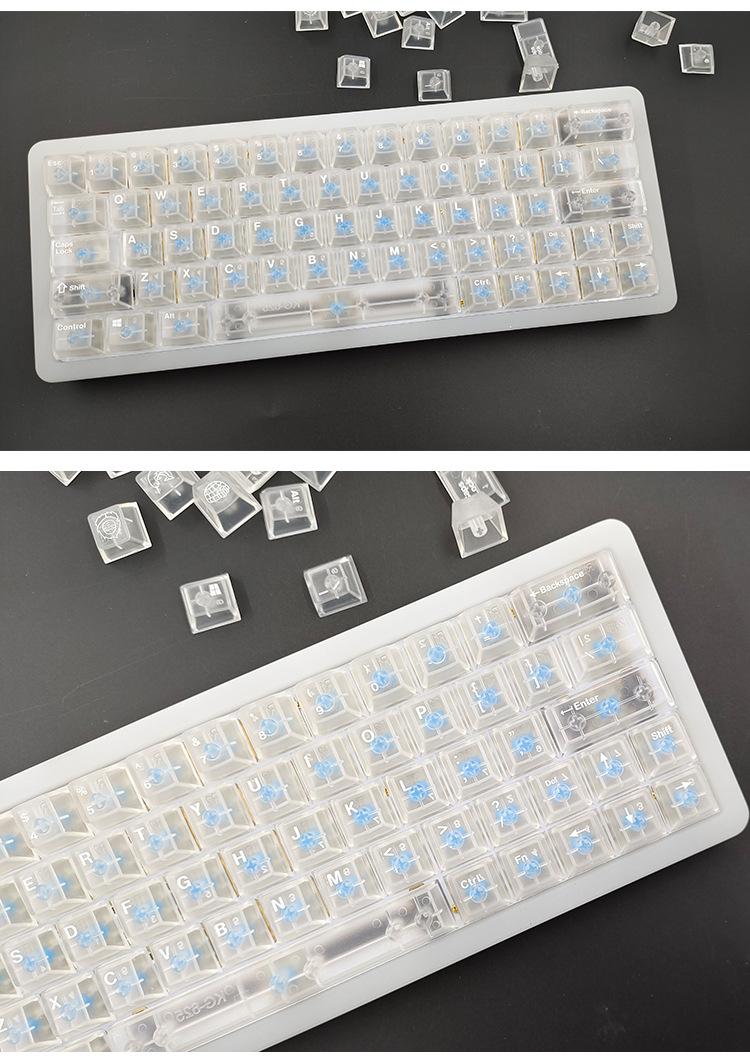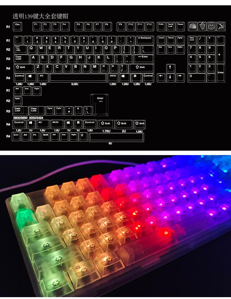 Teclas Transparentes de 139 Teclas Sin Grabado, Completamente Translúcidas Azul-Verde Glaciar Altura Original Teclas de Teclado Mecánico Sin Grabado