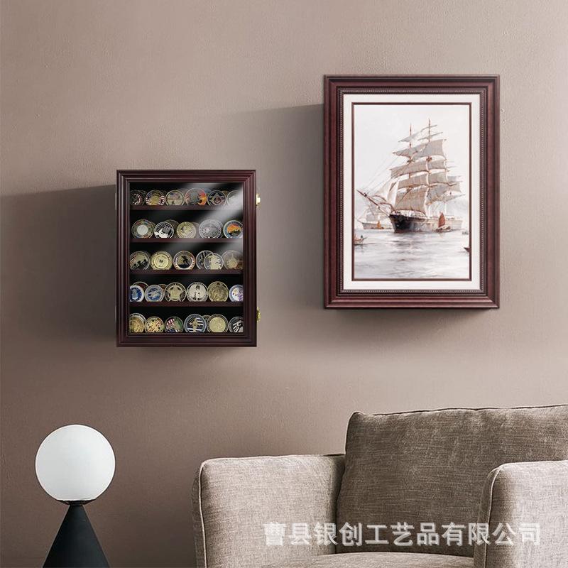 Caja de madera para guardar medallas, caja de madera para guardar monedas conmemorativas, caja de exhibición de medallas multicapa para montar en la pared, caja para monedas