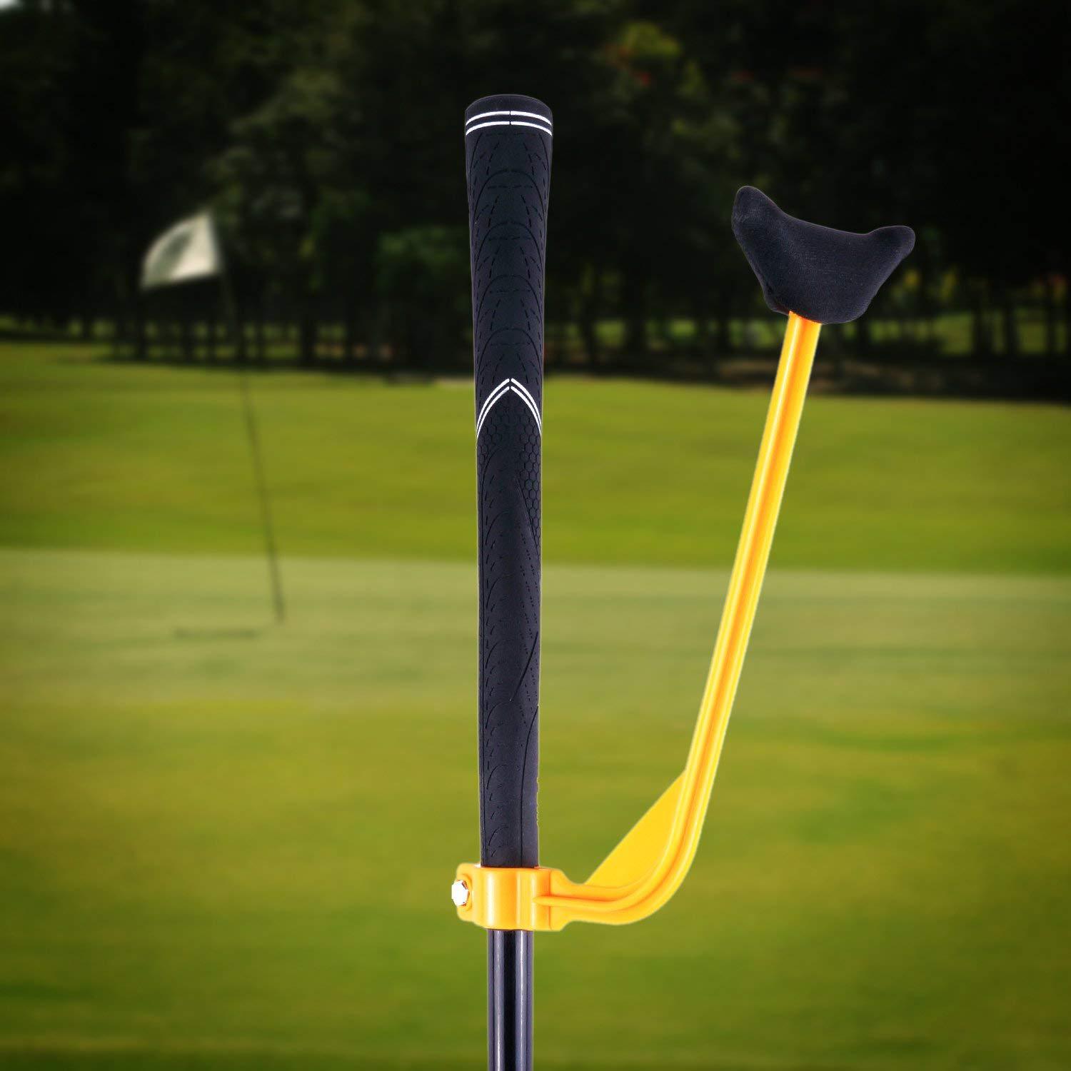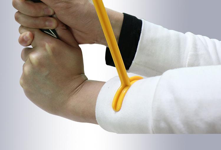 Puede corregir la postura incorrecta al jugar golf, ¡y es un buen dispositivo de entrenamiento para principiantes! La postura correcta del backswing es que el lado interno del brazo superior derecho debe estar cerca de la axila derecha, y el codo derecho y el brazo izquierdo recto forman un triángulo invertido. Sin embargo, algunos golfistas principiantes levantan el brazo derecho hacia arriba en lugar de mantenerlo cerca del cuerpo al hacer el backswing. Este producto puede ayudar eficazmente a los golfistas a restringir su brazo derecho durante el backswing, para lograr la postura correcta de mantener ambos brazos estables.