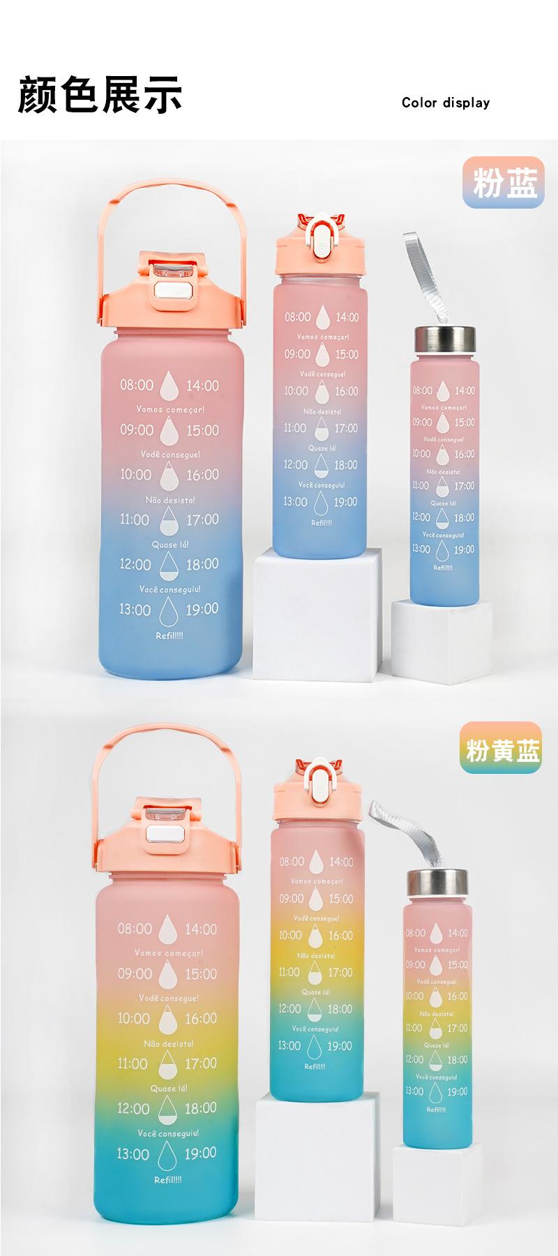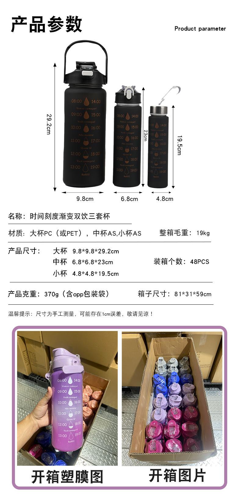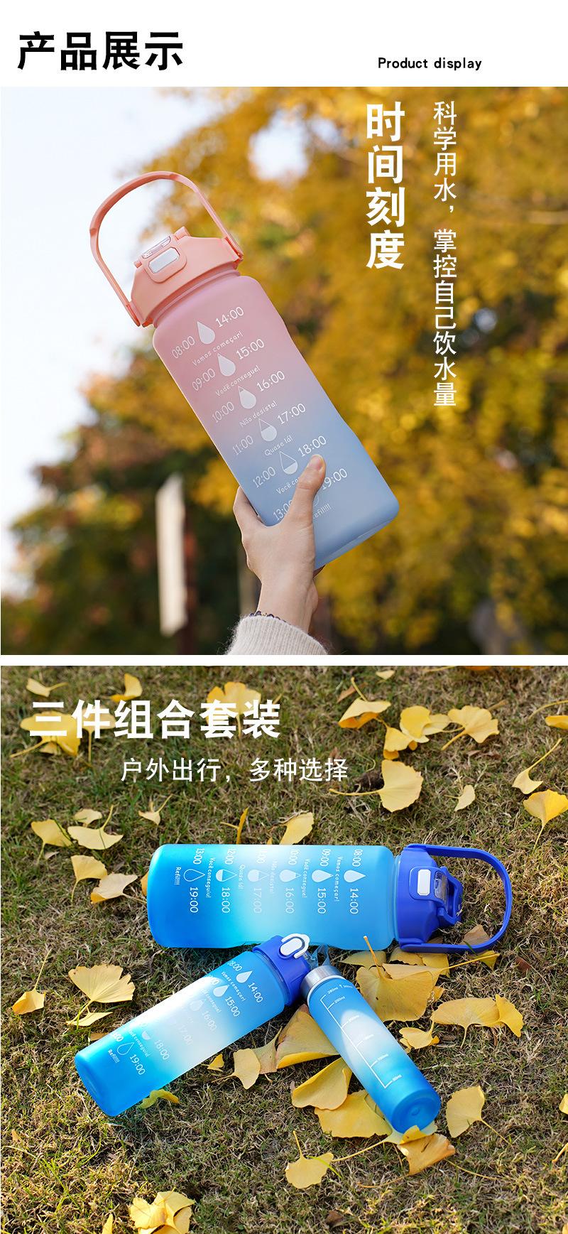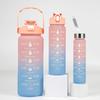 Tres juegos de tazas de gran capacidad con pajita, botella de agua deportiva de plástico con degradado esmerilado.
