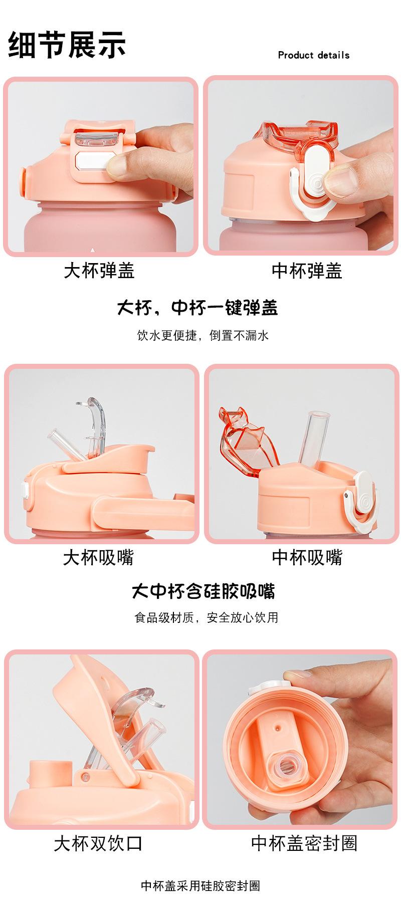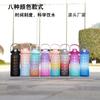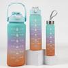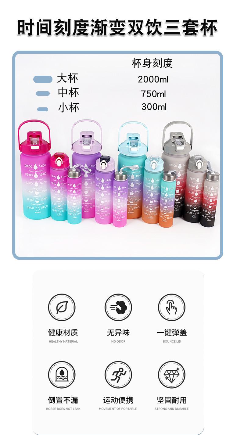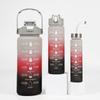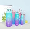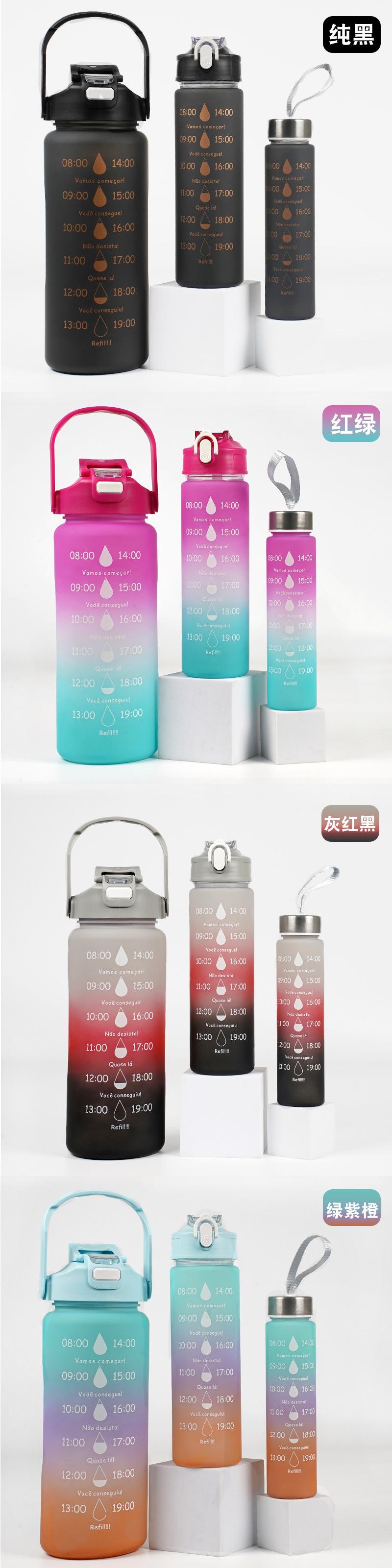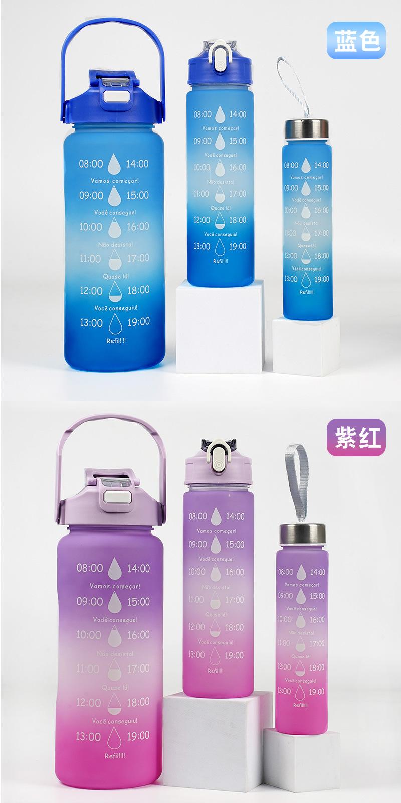 Tres juegos de tazas de gran capacidad con pajita, botella de agua deportiva de plástico con degradado esmerilado.