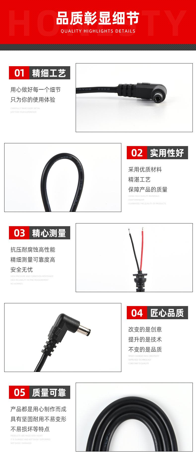 Cable de Extensión de Alimentación Codo Dc55*21 con Ranura para Tarjeta Cable de Conexión de Alimentación 5525 Enchufe Resistente al Desgaste Carga Retardante de Llama
