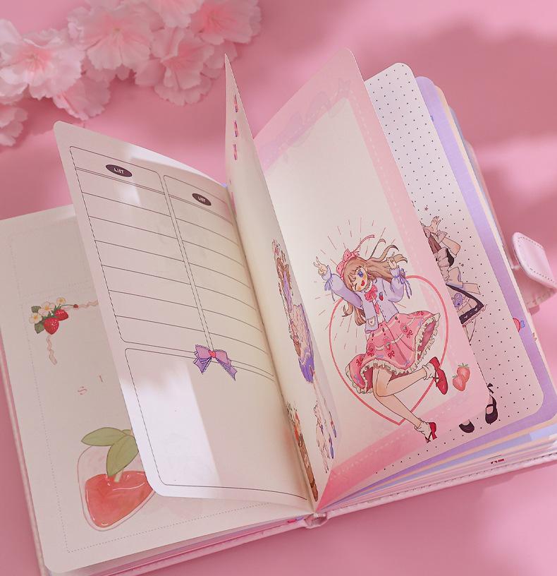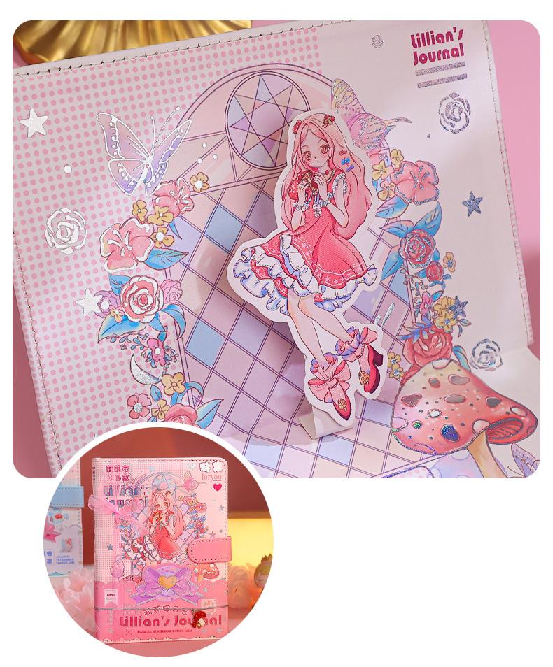 Strawberry cocoa book + princess quicksand powder, Mirror romance book + princess quicksand green, Lillian dia...