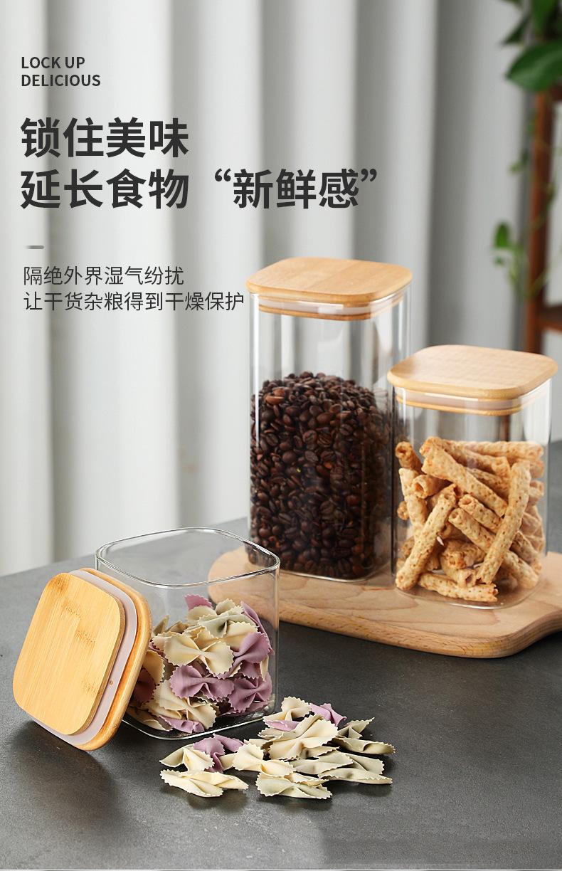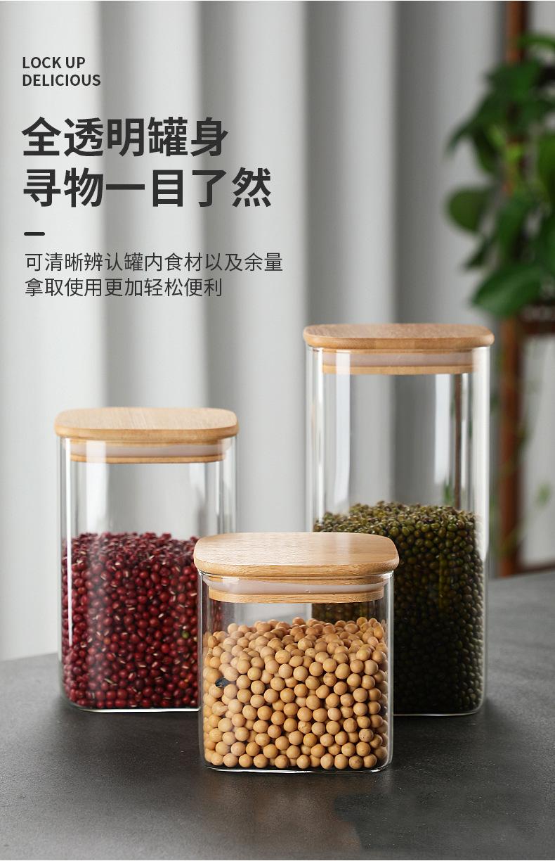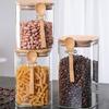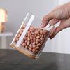 Frasco de Almacenamiento de Vidrio de Borosilicato Alto con Tapa de Bambú, Frasco para Alimentos, Frasco Hermético para Granos, Botella para Almacenamiento de Snacks, Sellado a Prueba de Humedad con Tapa