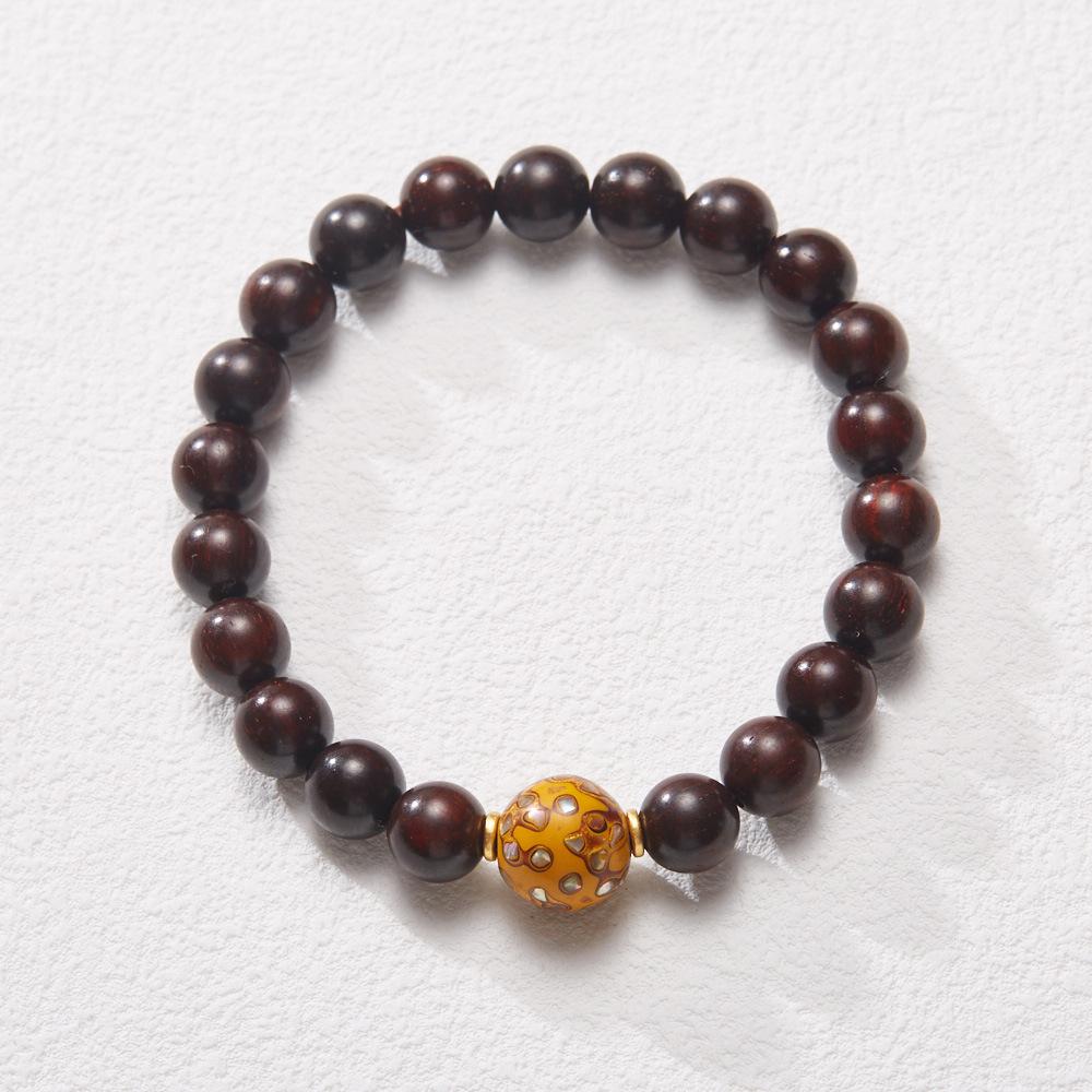 |Material Principal|Sándalo Rojo de Hoja Pequeña, Cuentas de Laca Patrimonio Cultural Intangible, Accesorios de Plata 925 Chapados en Oro