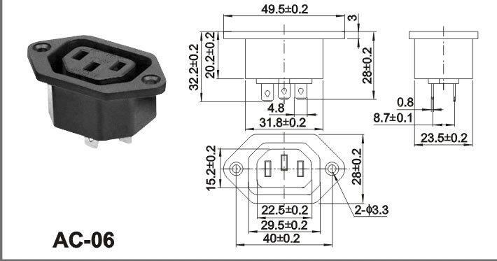 Enchufe de Alimentación CA Blanco Ac-06, Enchufe de Alimentación de 3 Orificios Enchufe Hembra Ac de Tres Orificios Tipo Enchufable para Electrodomésticos
