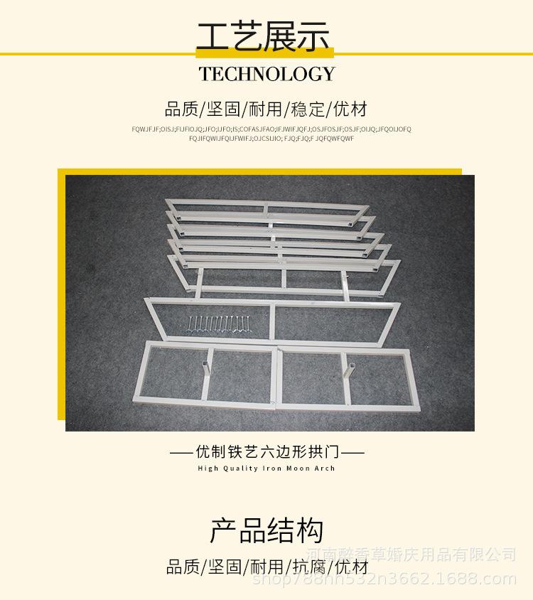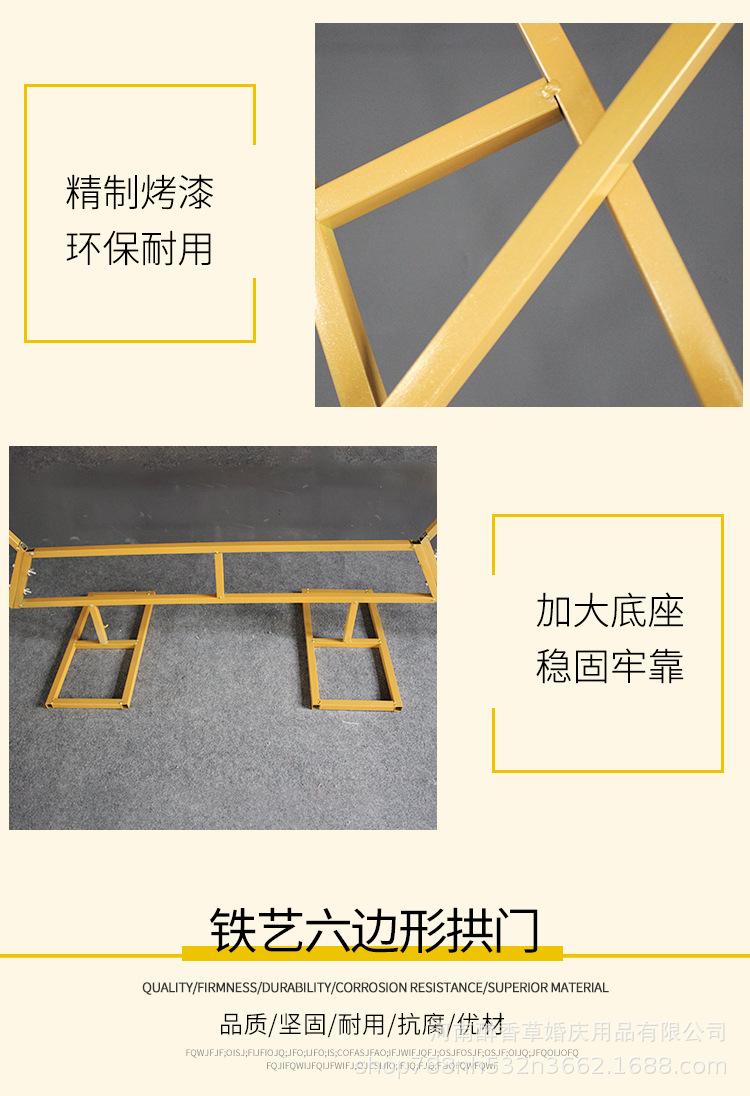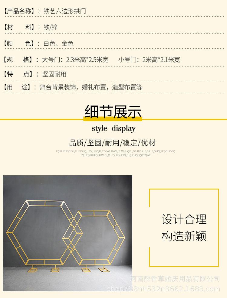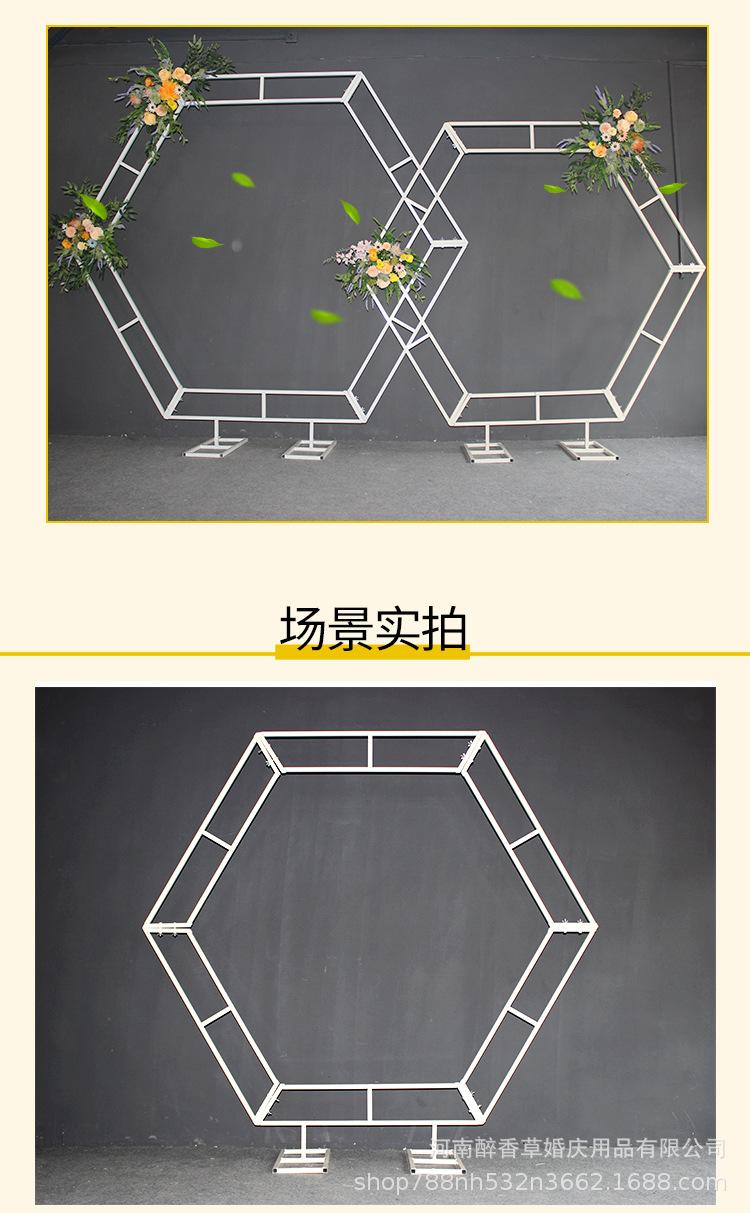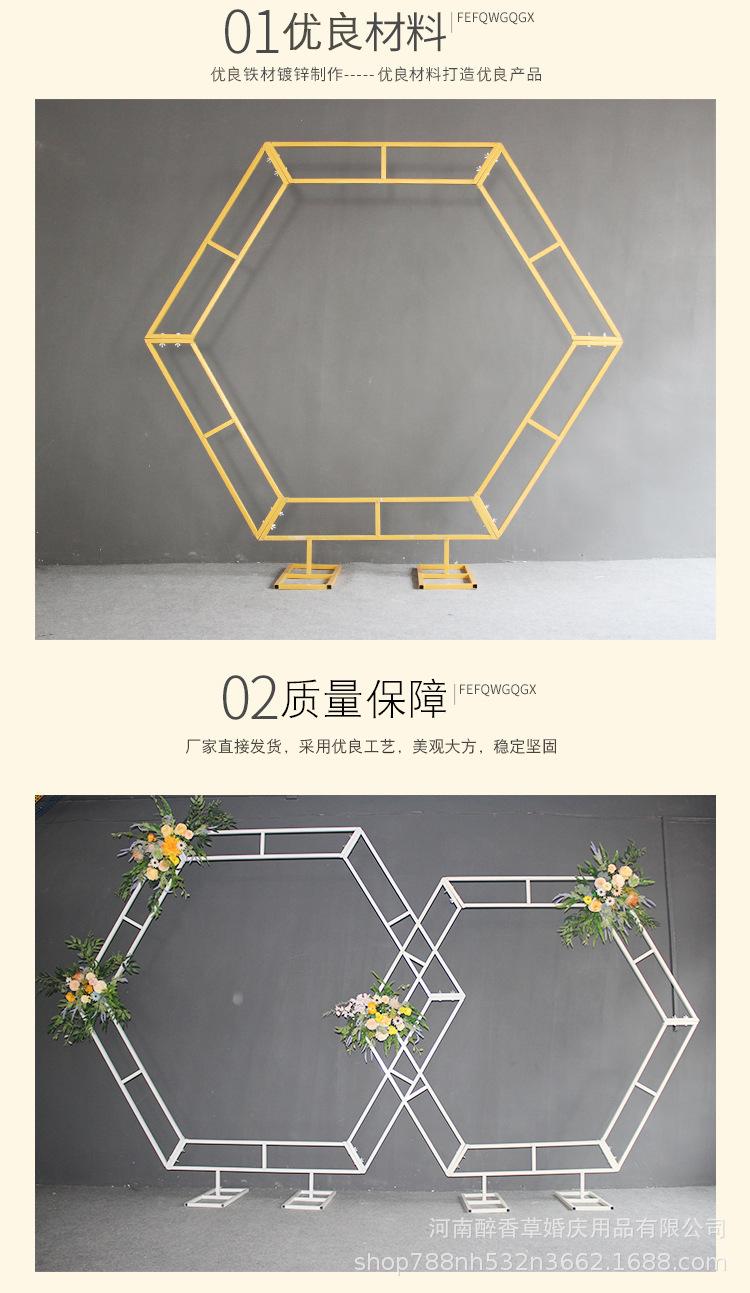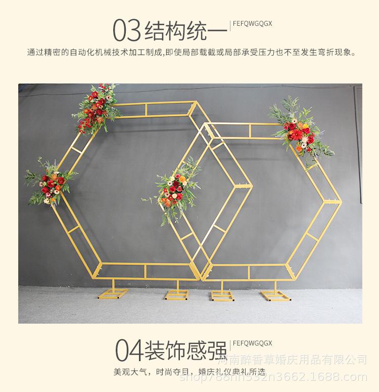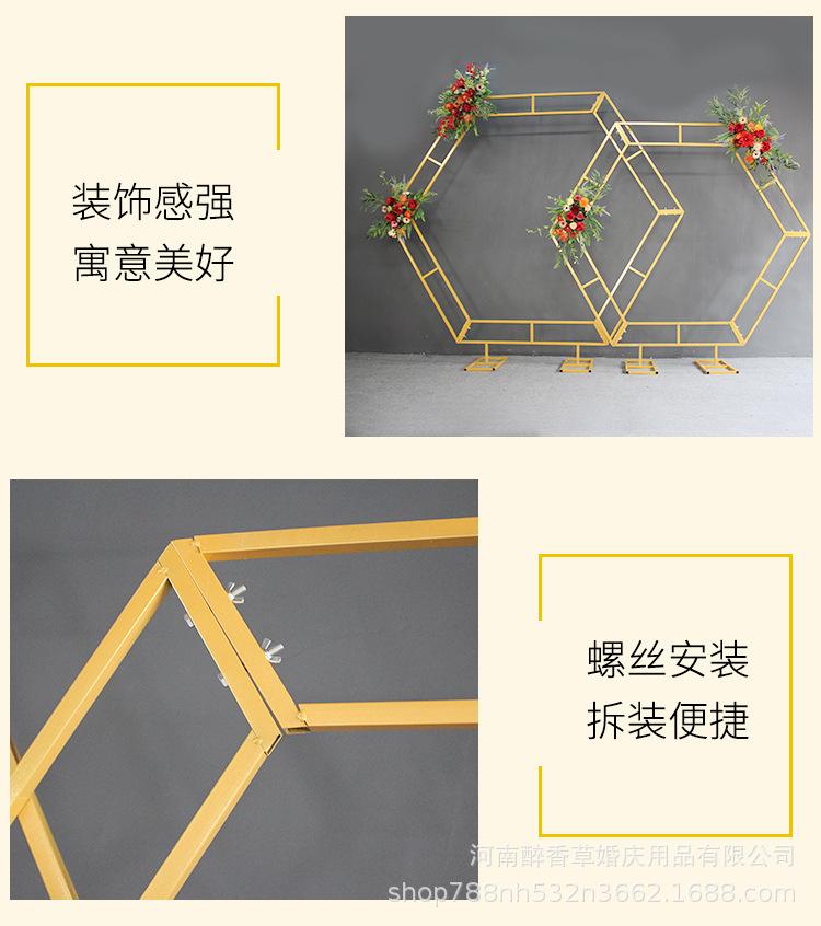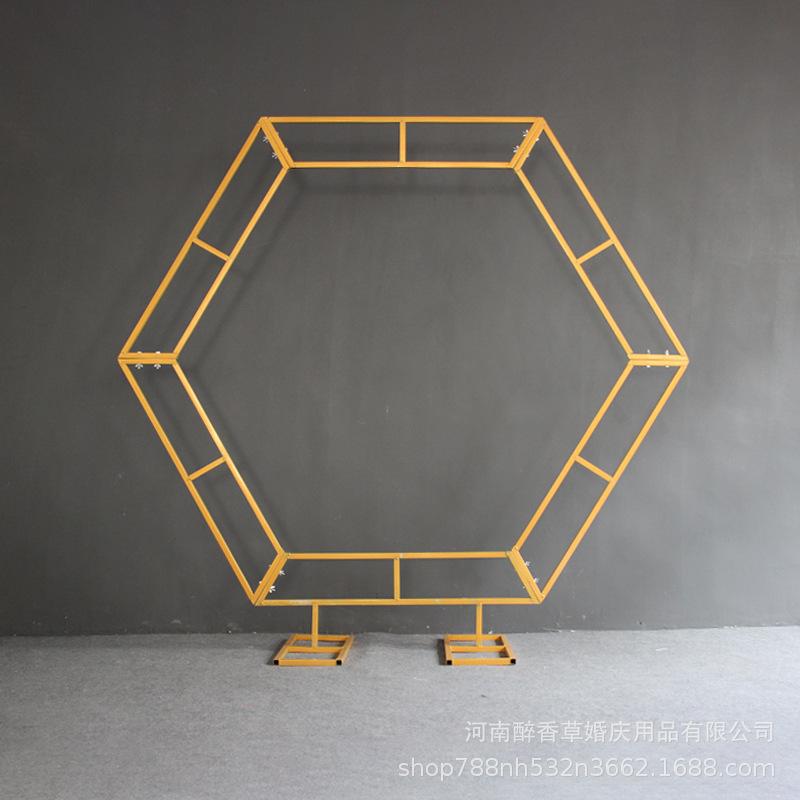 Nuevo diseño de lugar de celebración de bodas, arco de hierro, diseño geométrico, decoración de escenario, marco, fondo hexagonal, estante