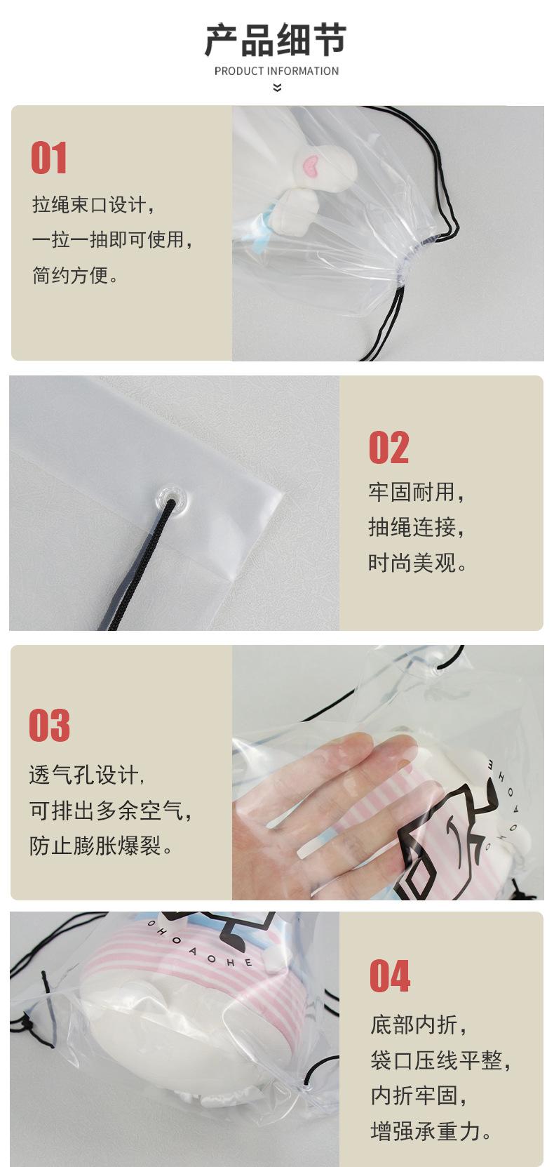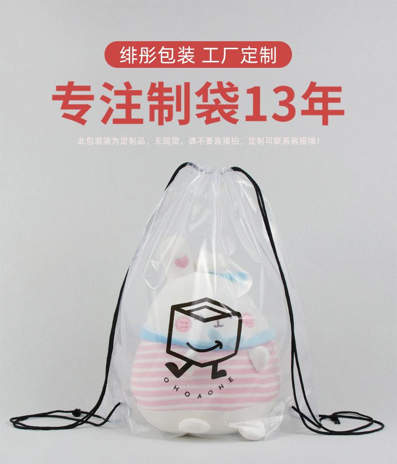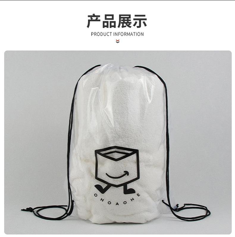 Mochila transparente de PE impermeable personalizada con cordón ajustable, venta al por mayor, para niños, para exteriores, bolsa de almacenamiento de ropa con cordón