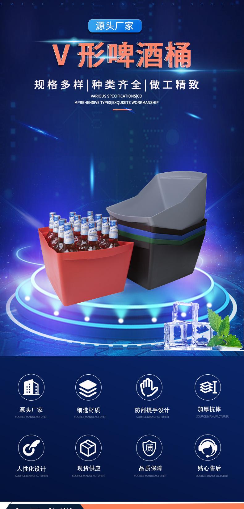 Fabricante en stock cubo de hielo cuadrado de plástico, cubo de cerveza en forma de V, barra, cesta de cerveza KTV, caja de vino, cubo de hielo de una pieza