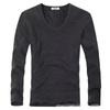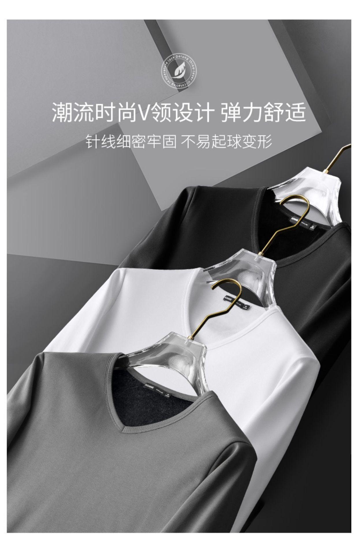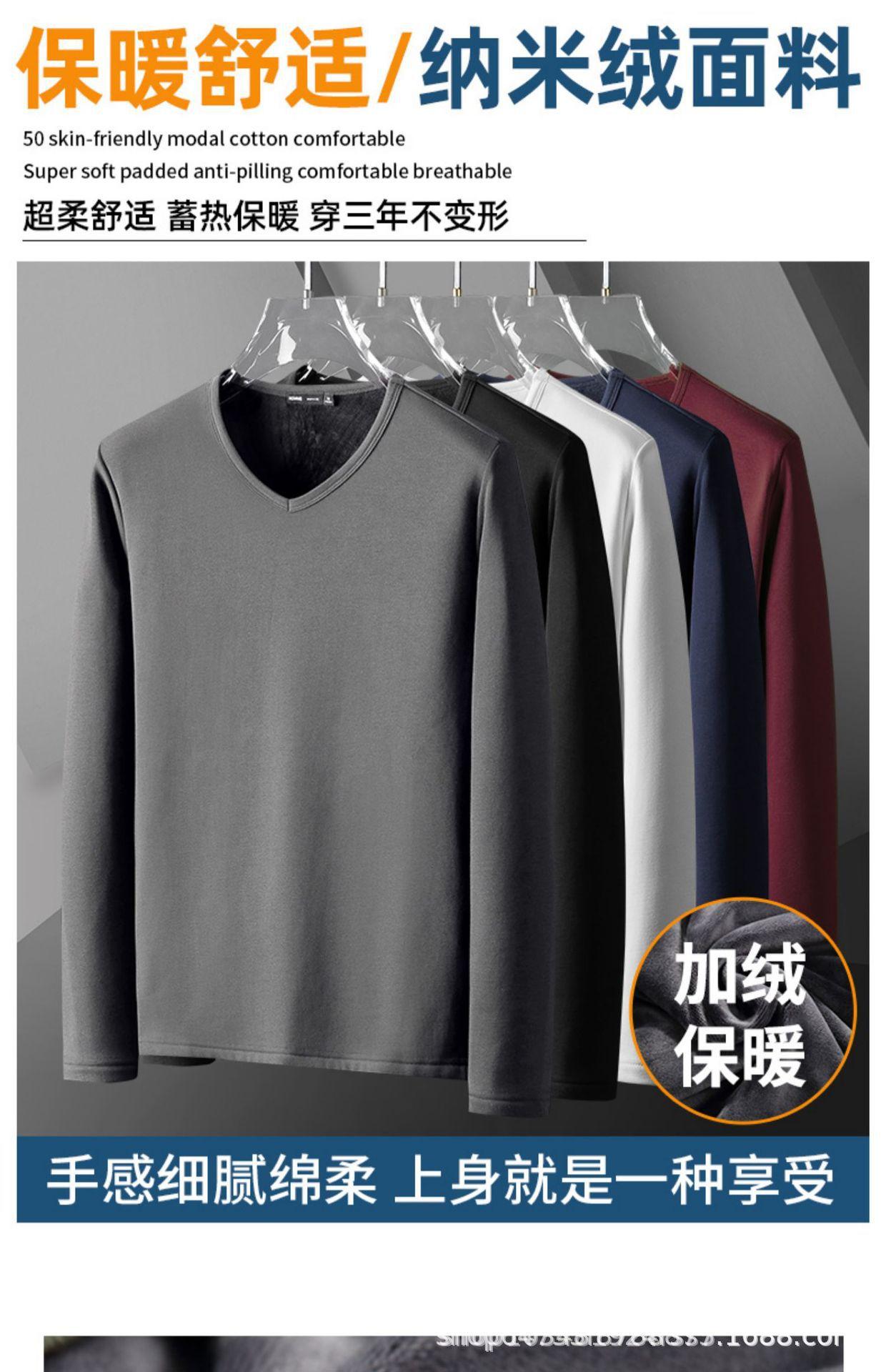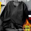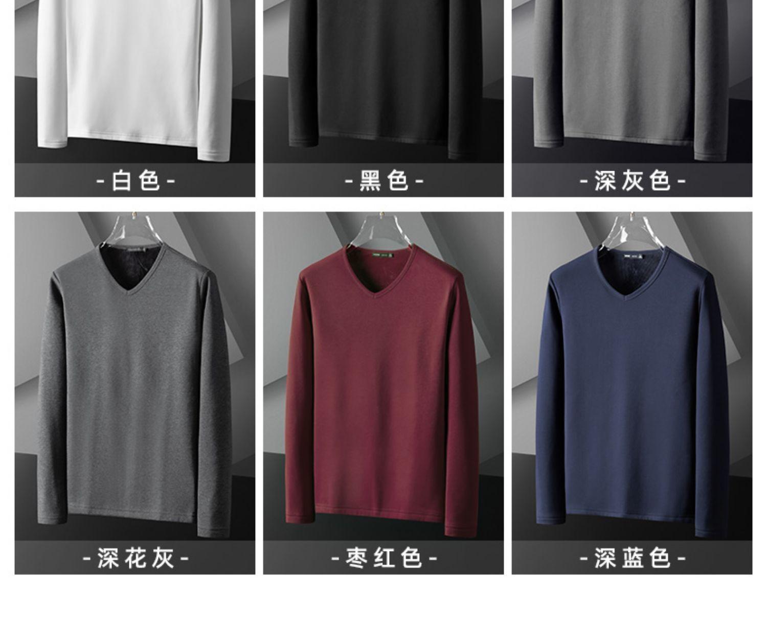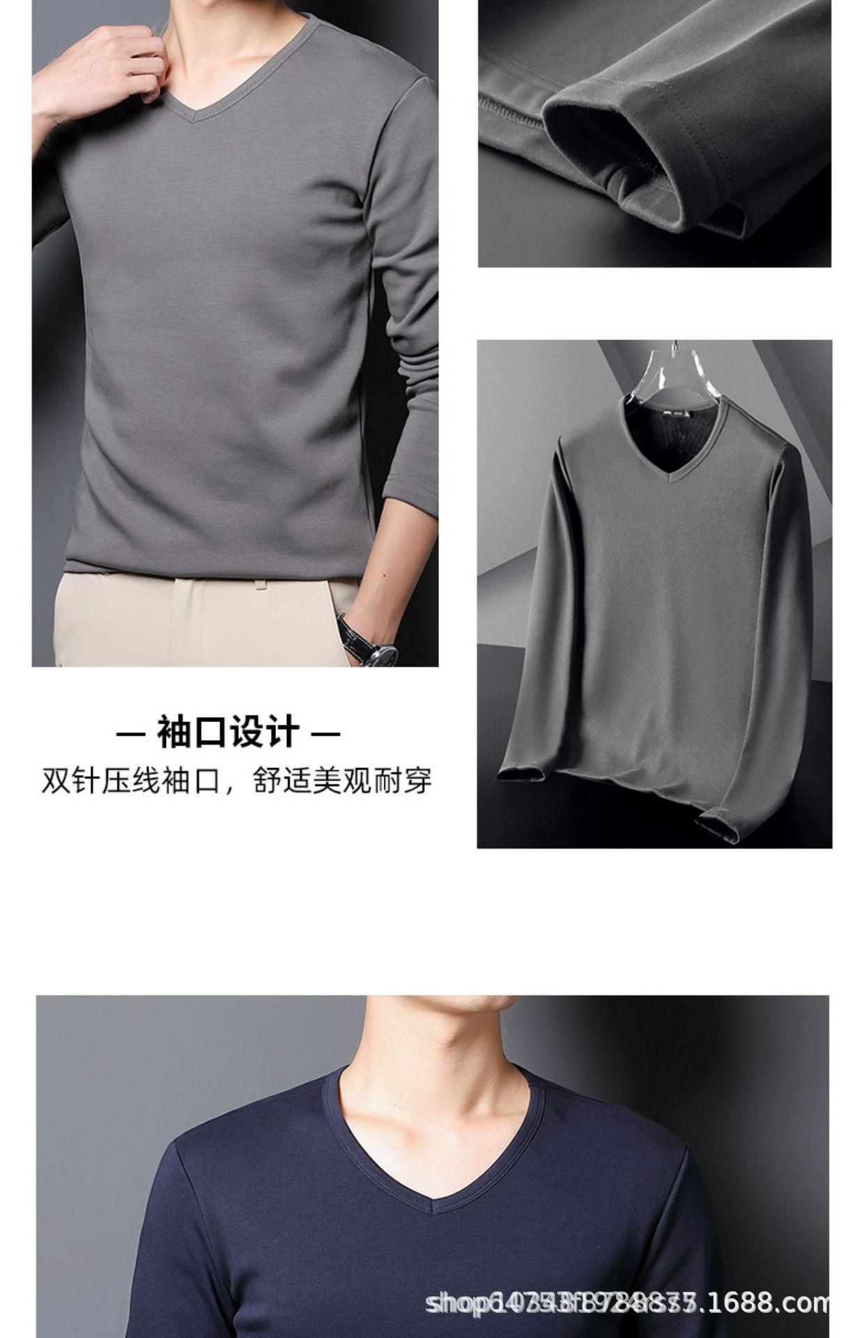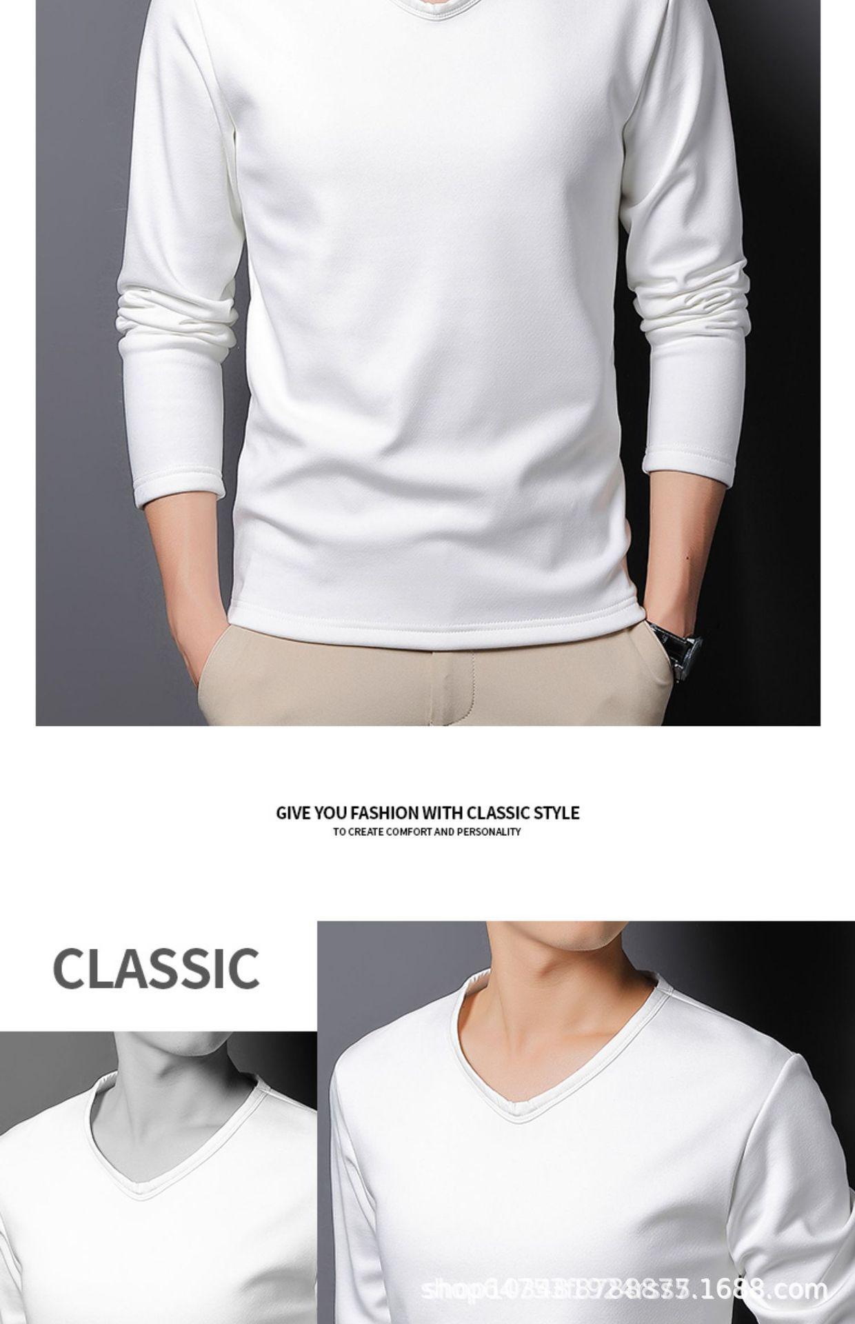 Camiseta de manga larga con forro polar para hombre, ropa interior térmica de primavera y otoño, camisa de color liso con cuello en V redondo, top de negocios de comercio exterior