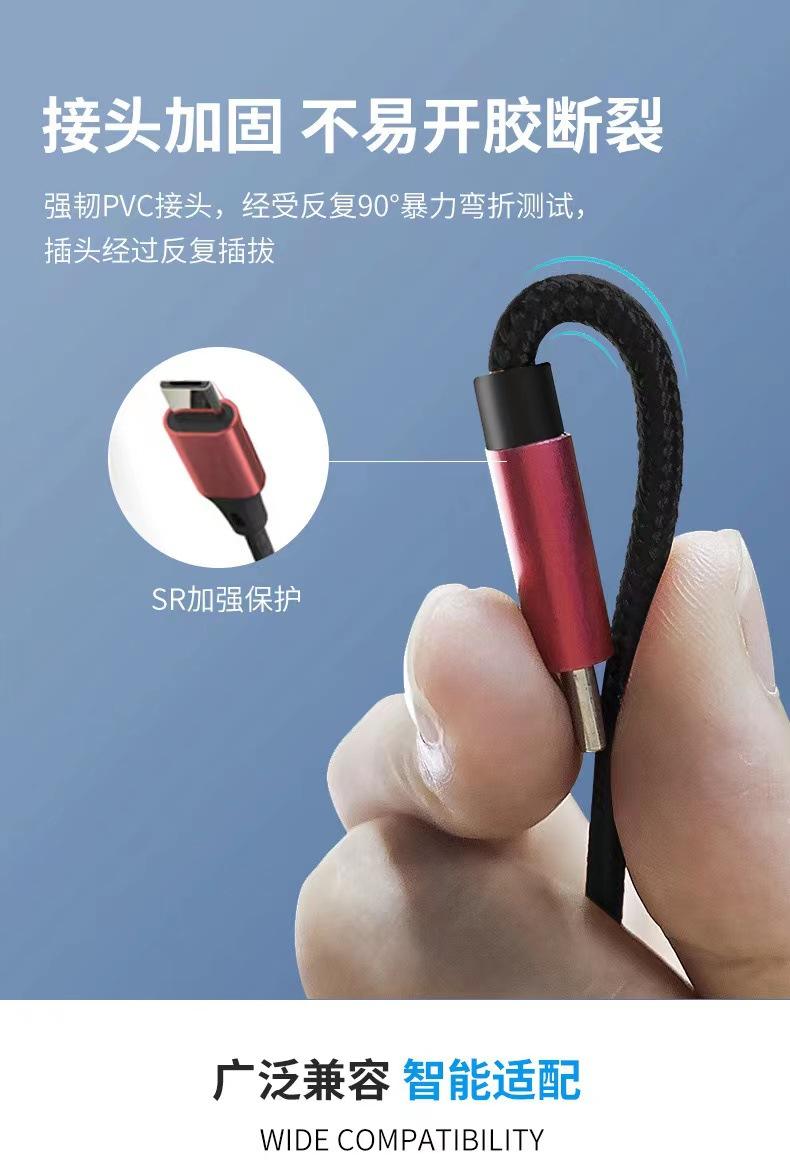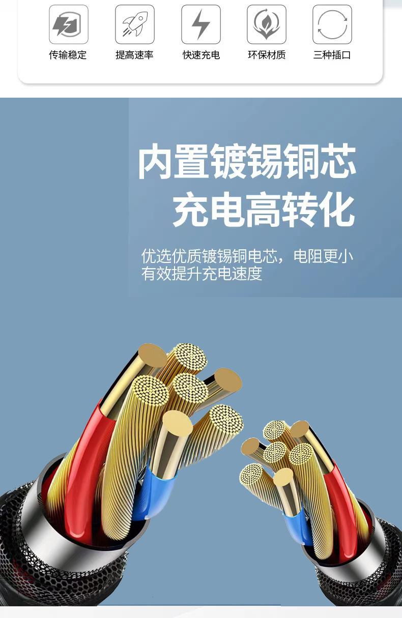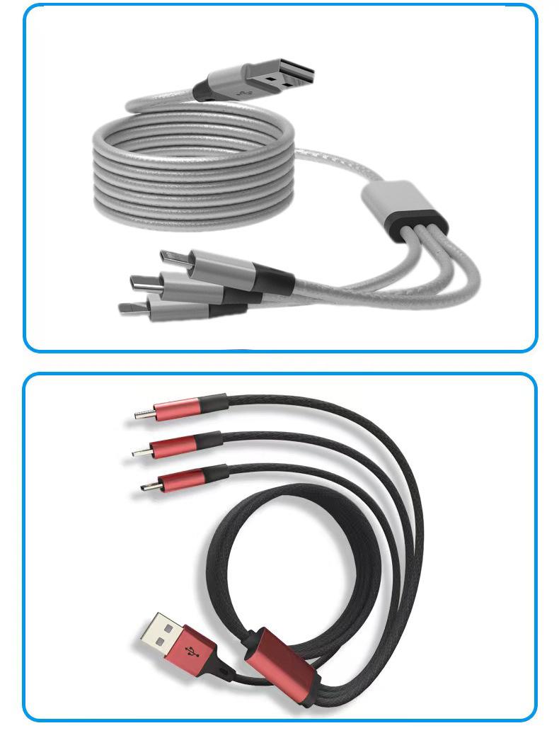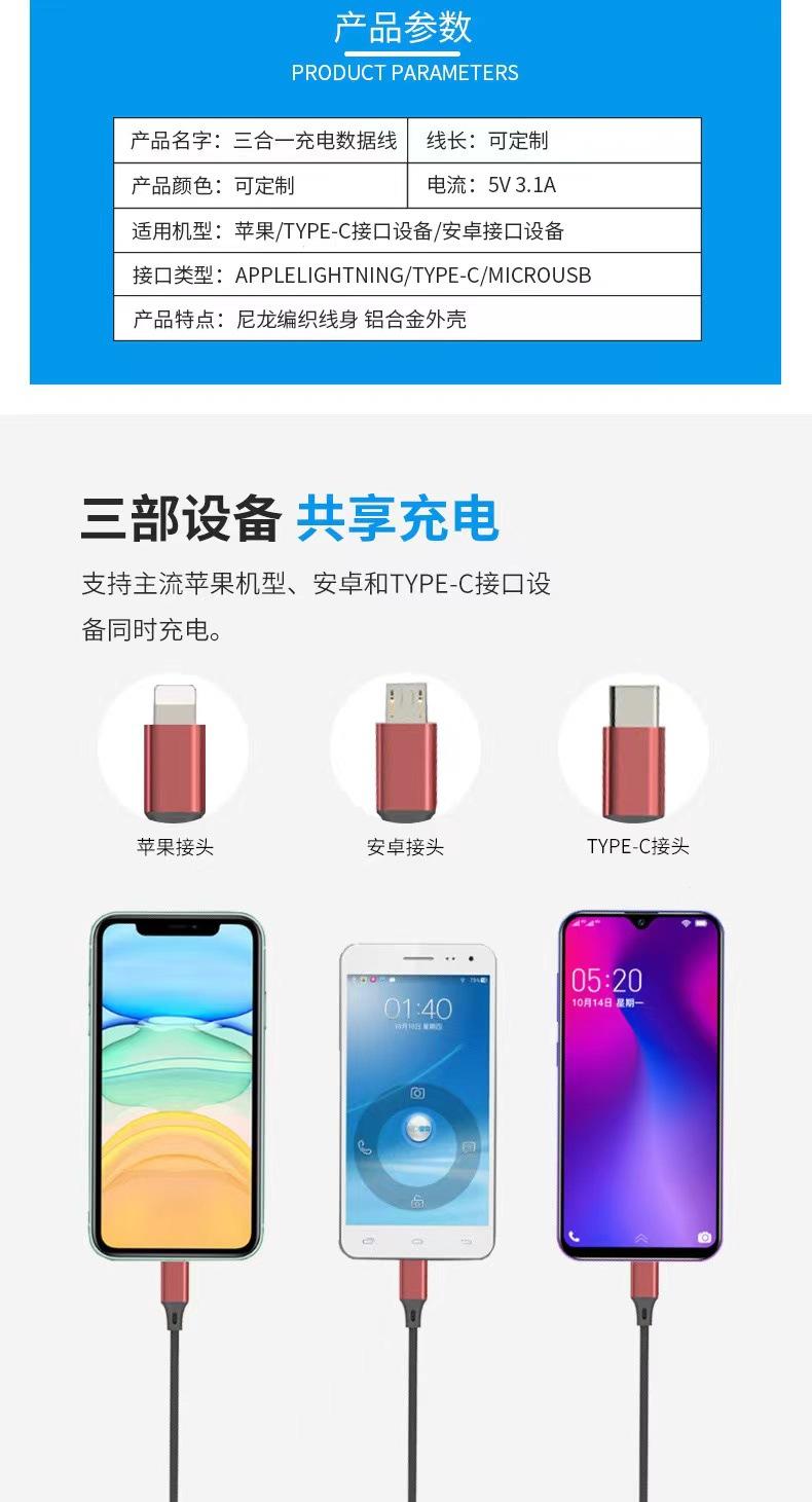 Cable de datos de uno a tres, trenzado de nailon, carga rápida, cable de carga tres en uno para Apple Android, cable tipo C