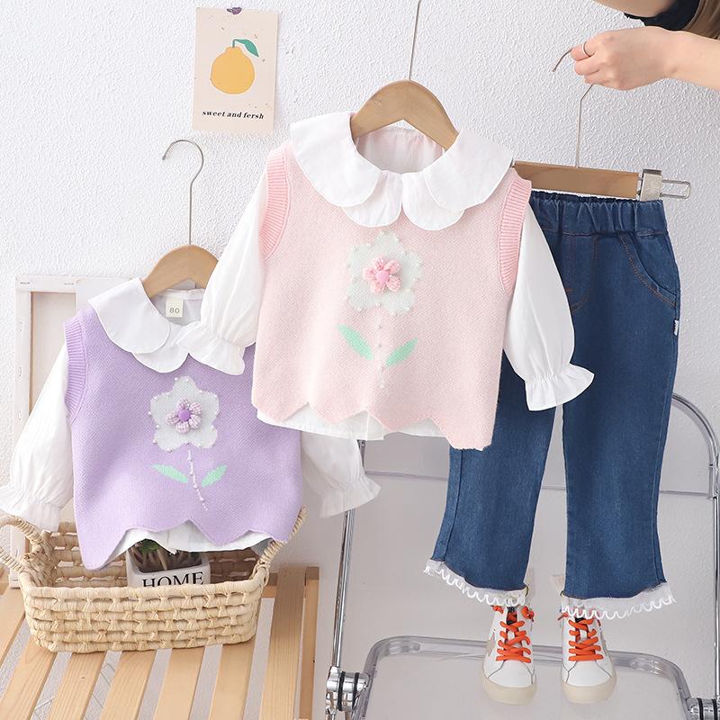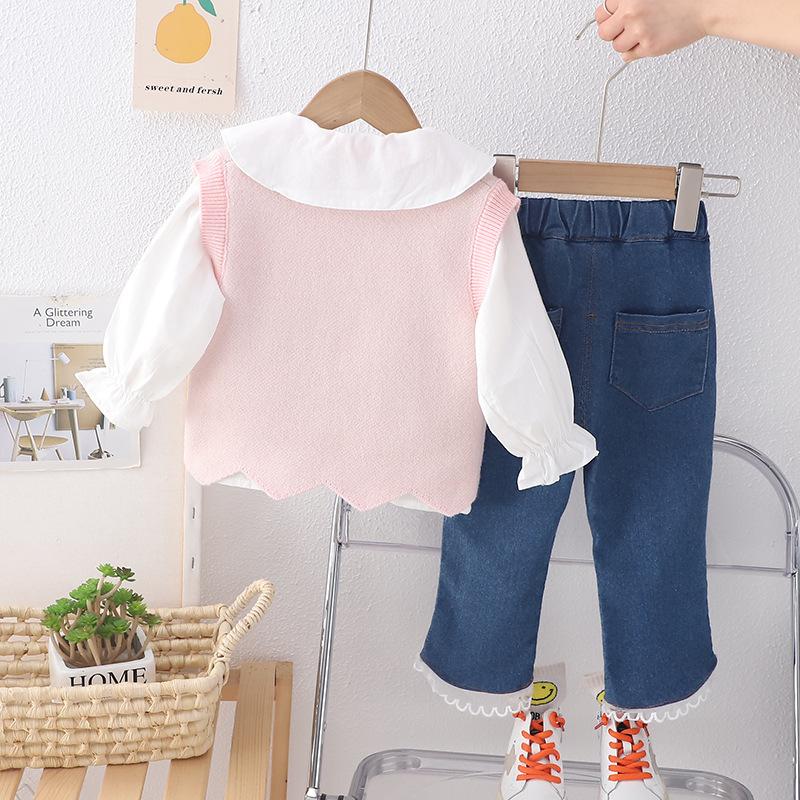 Compra Traje de chaleco lindo nuevo para niños 2024 ropa de otoño para niñas pantalones de estilo coreano para niños ropa para bebés niños ropa infantil al por mayor en Joom.pro