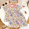 Traje de manga corta para niños, camiseta de verano para niños, pantalones cortos, ropa bonita coreana para niñas, ropa para bebés y niños, venta al por mayor