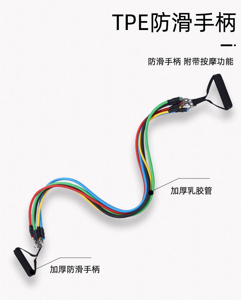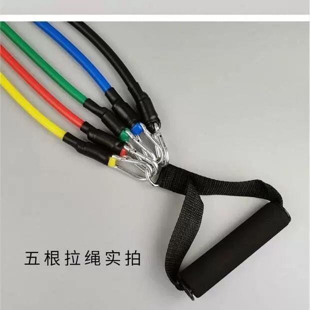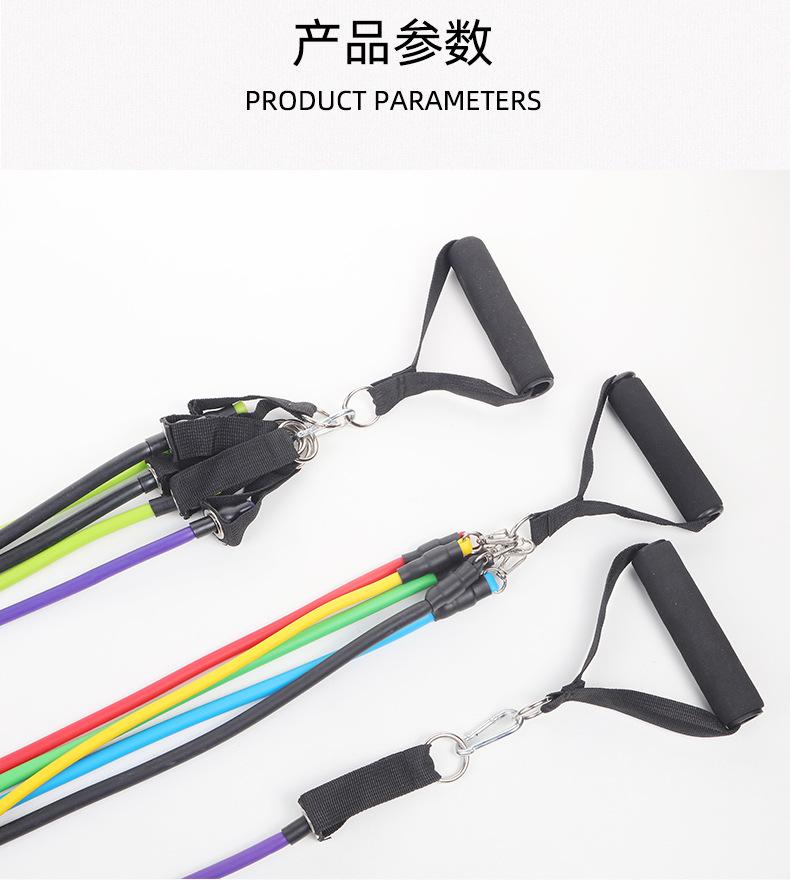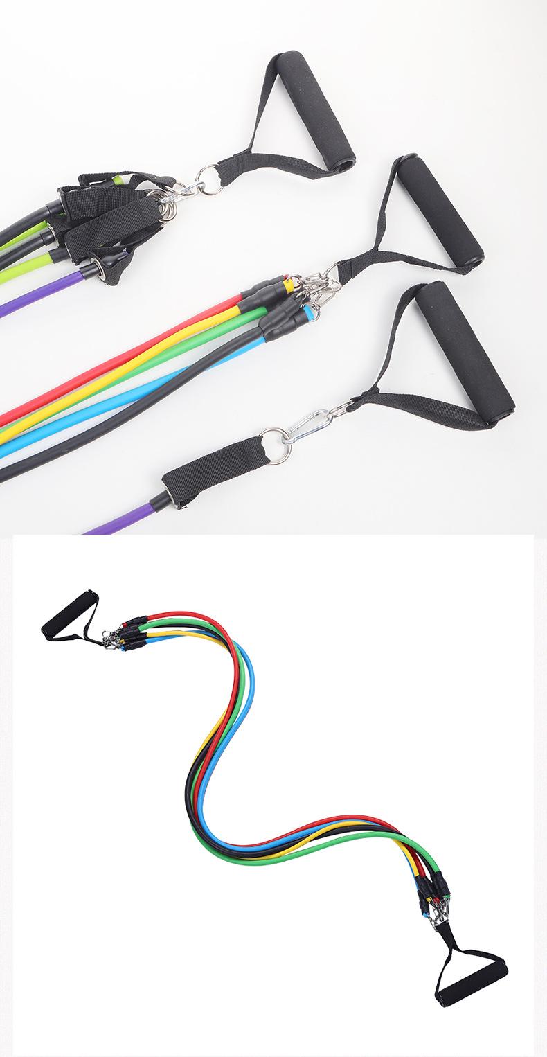 Juego de 11 piezas de bandas de resistencia: 5 cuerdas de tracción, 2 asas, 2 correas para tobillos, 1 anclaje para puerta y 1 bolsa de tela