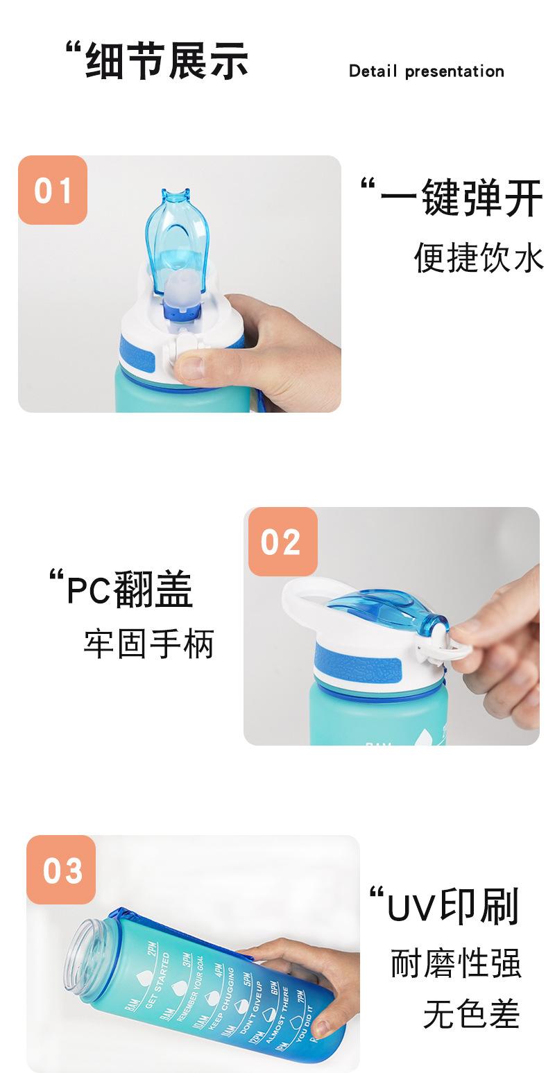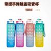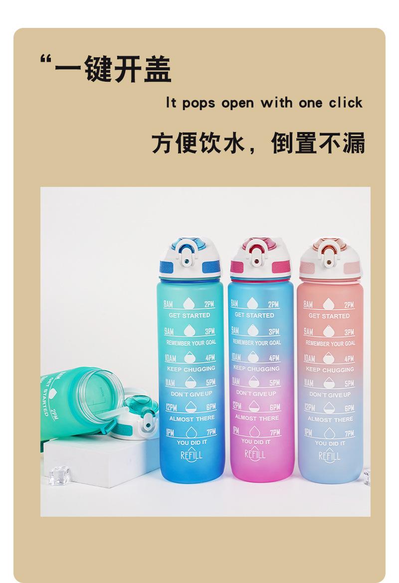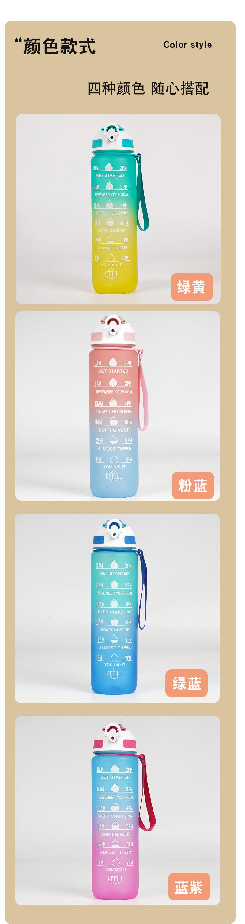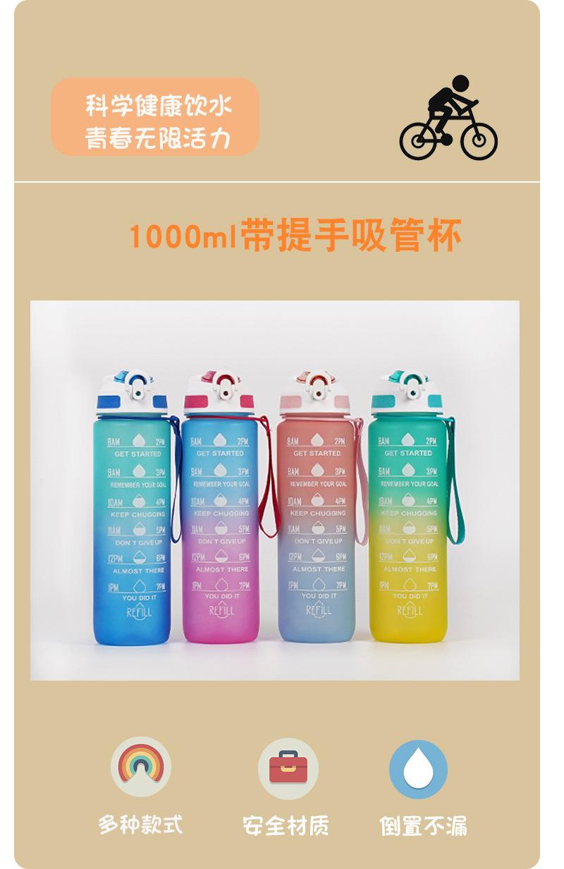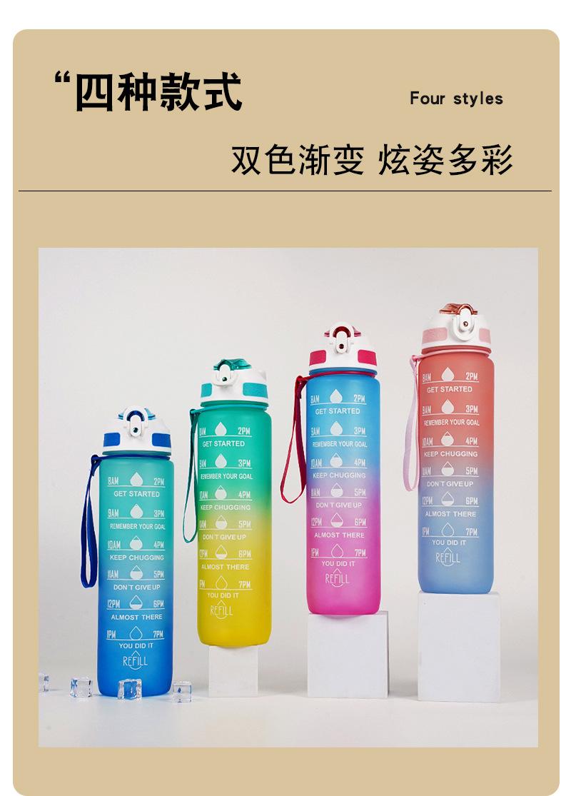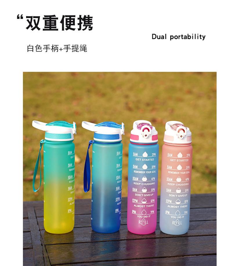 Taza de agua portátil deportiva esmerilada para exteriores de gran capacidad con color degradado de Amazon, 1 L, con pajita de plástico y escala