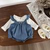 Ropa de Primavera y Otoño para Bebé Estilo Coreano Bolsa Floral Pedo Ropa de una pieza Traje Conjunto de dos piezas para Bebé Niña