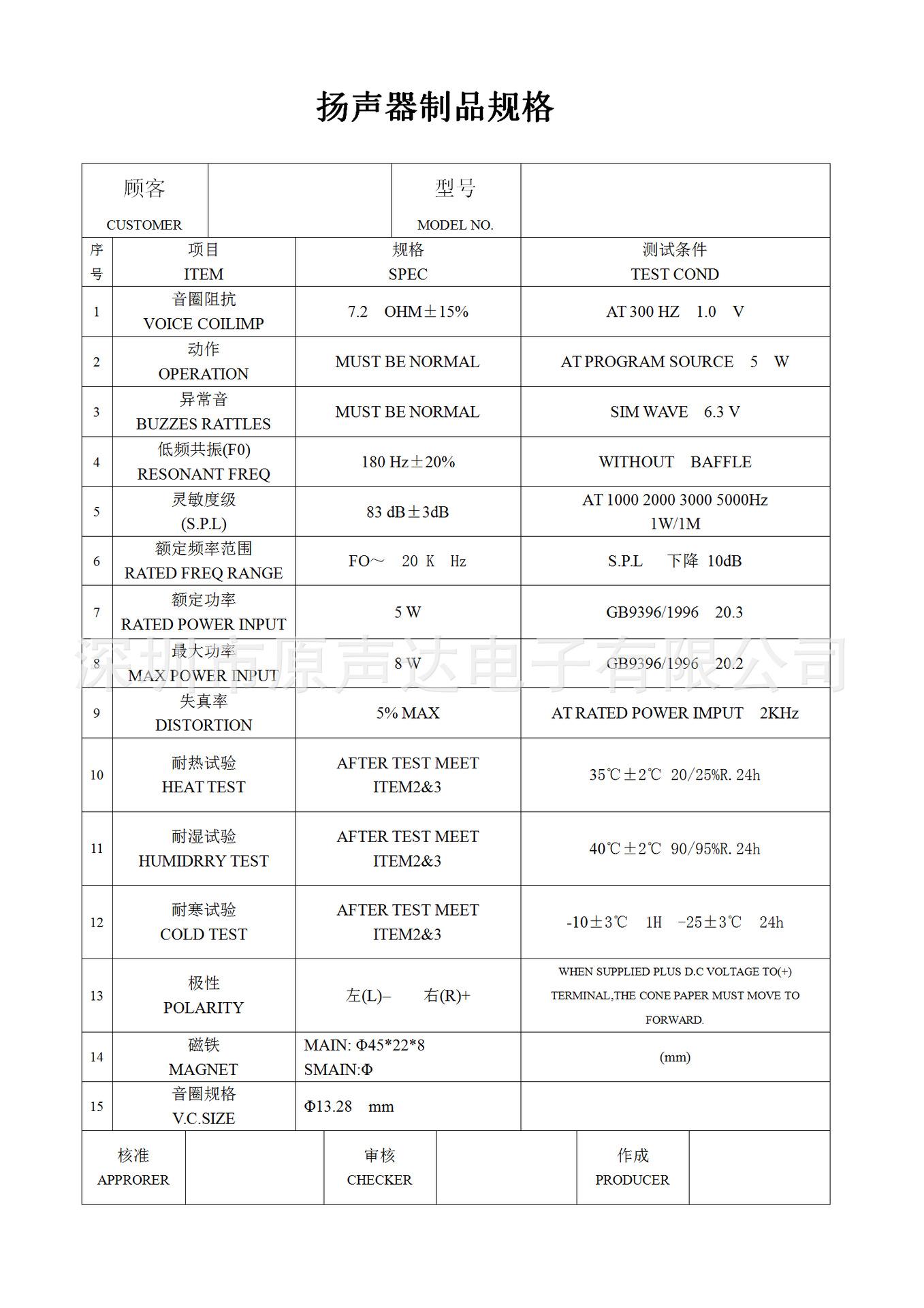 Nos adherimos al principio de "orientado a la calidad, la reputación primero", "preocuparnos por las necesidades de los clientes y pensar en lo que los clientes quieren", seguimos los principios de entrega precisa, calidad satisfactoria y servicio perfecto, satisfacemos de todo corazón las necesidades de nuestros clientes, nos esforzamos por ganar la cooperación a largo plazo de los clientes y promovemos conjuntamente el vigoroso desarrollo de la industria electroacústica!