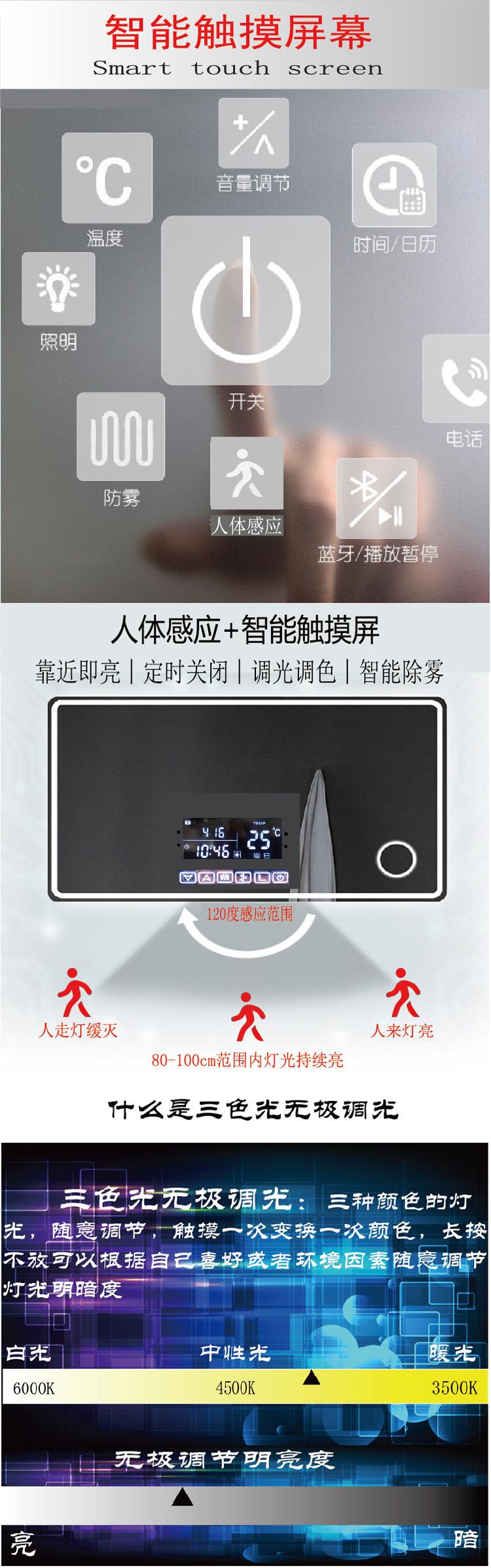 Double touch + human body sensor + three-color light + anti-fog