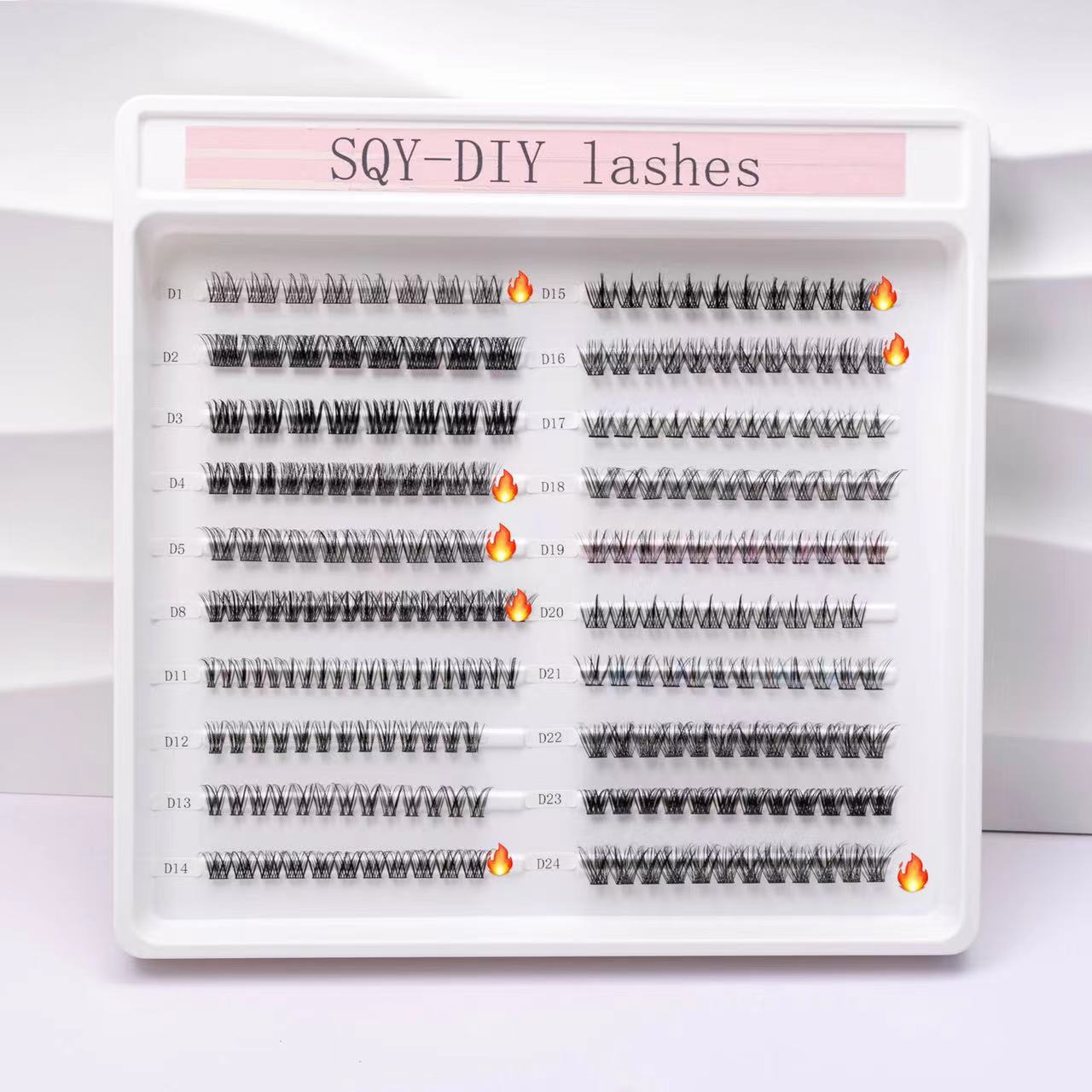 Nuevas Pestañas Postizas Segmentadas DIY Transfronterizas 100D Gran Capacidad D Curvadas Desordenadas Gruesas Rizadas Pestañas Simuladas