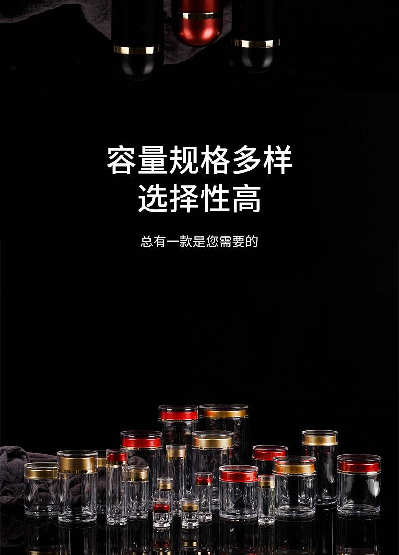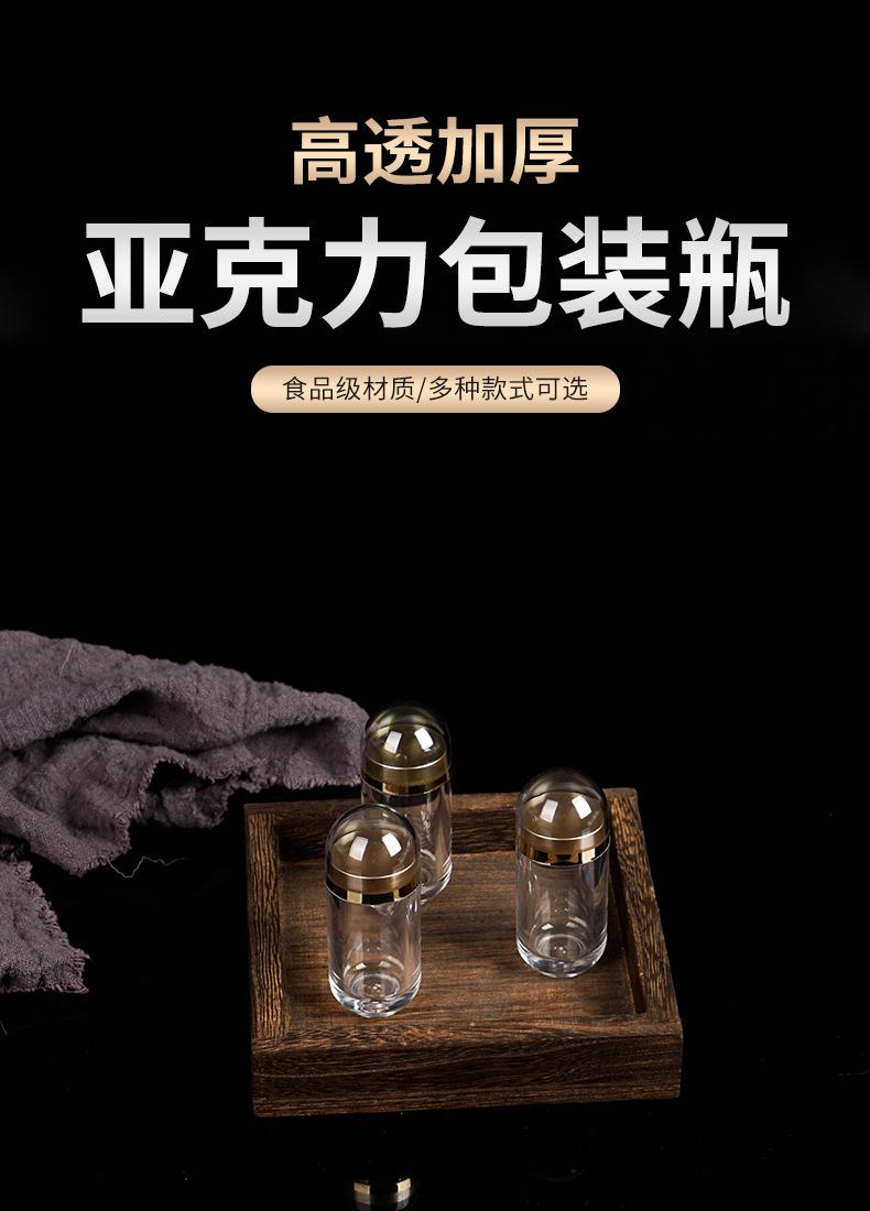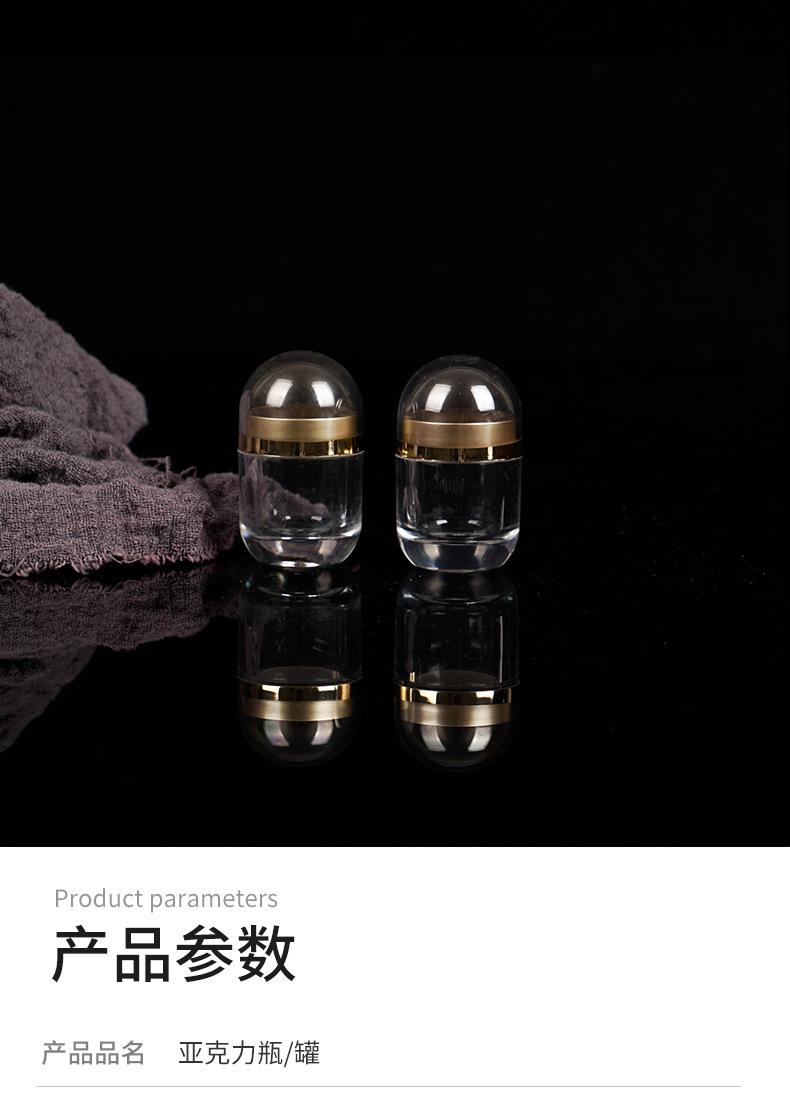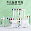 Botella de medicina acrílica transparente de alta gama con cabezal redondo, cápsula, pastilla, botella de recarga de grado alimenticio, botella de plástico portátil para productos de cuidado de la salud.