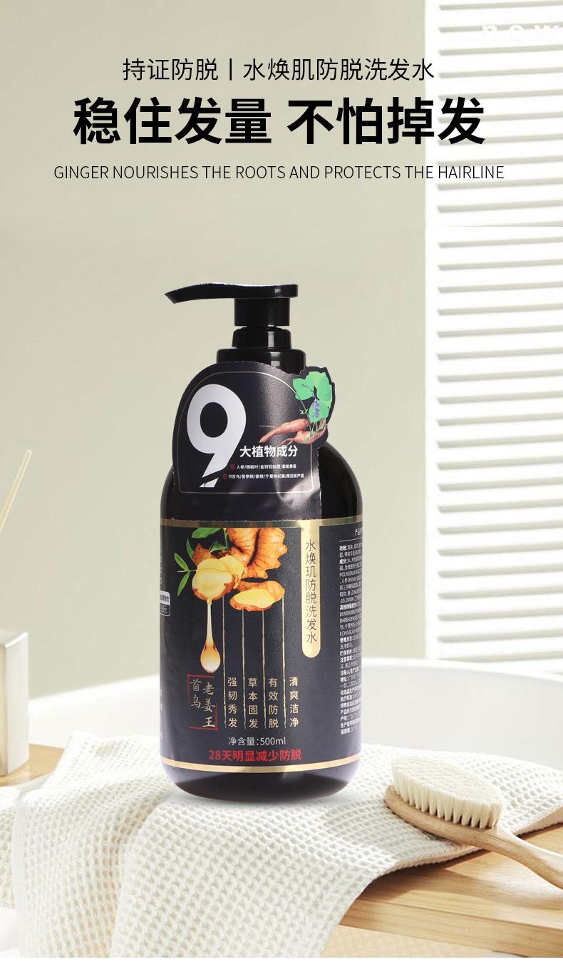 Champú Anticaída Iluminador de Agua Champú Polygonum Multiflorum 500ml Fortalecedor Capilar Anticaída Control de Aceite Nutritivo Cabello Ligero