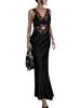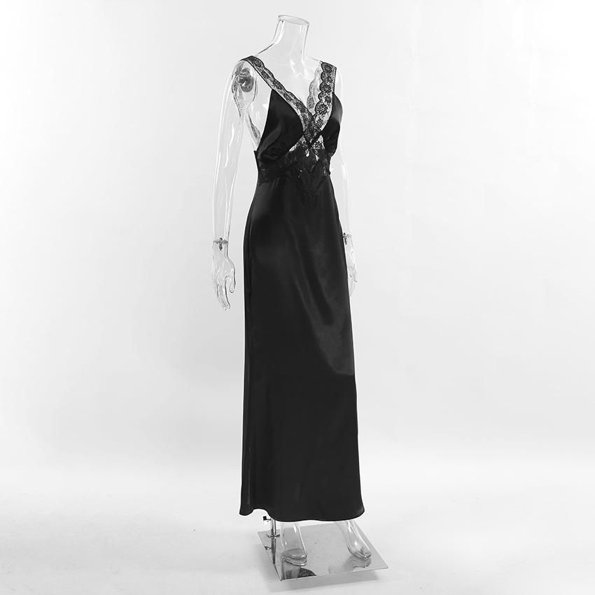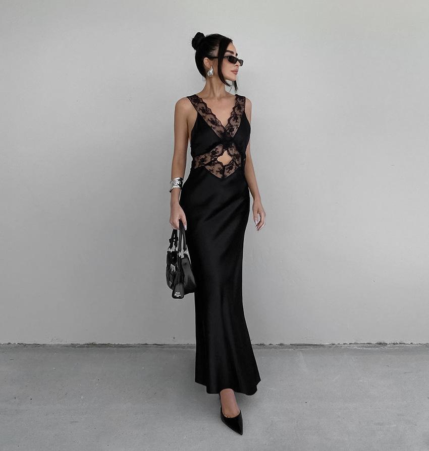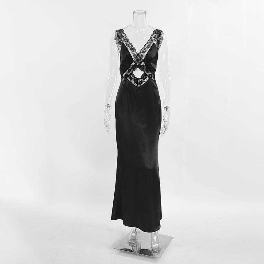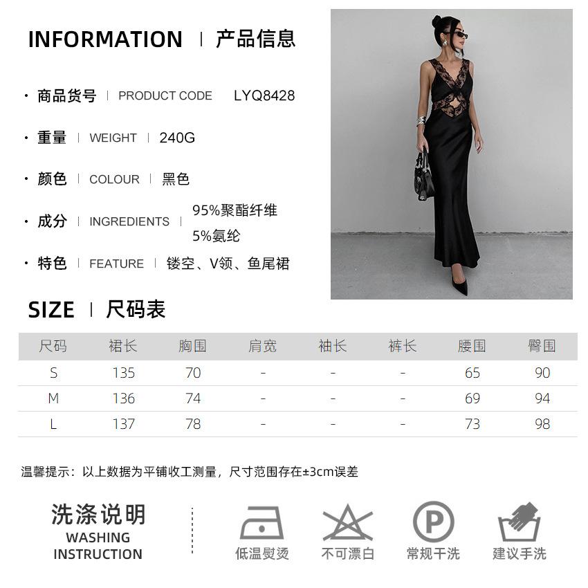 Nuevo vestido francés sexy con escote en V y encaje de cola de pez 2024 otoño elegante ajustado europeo y americano