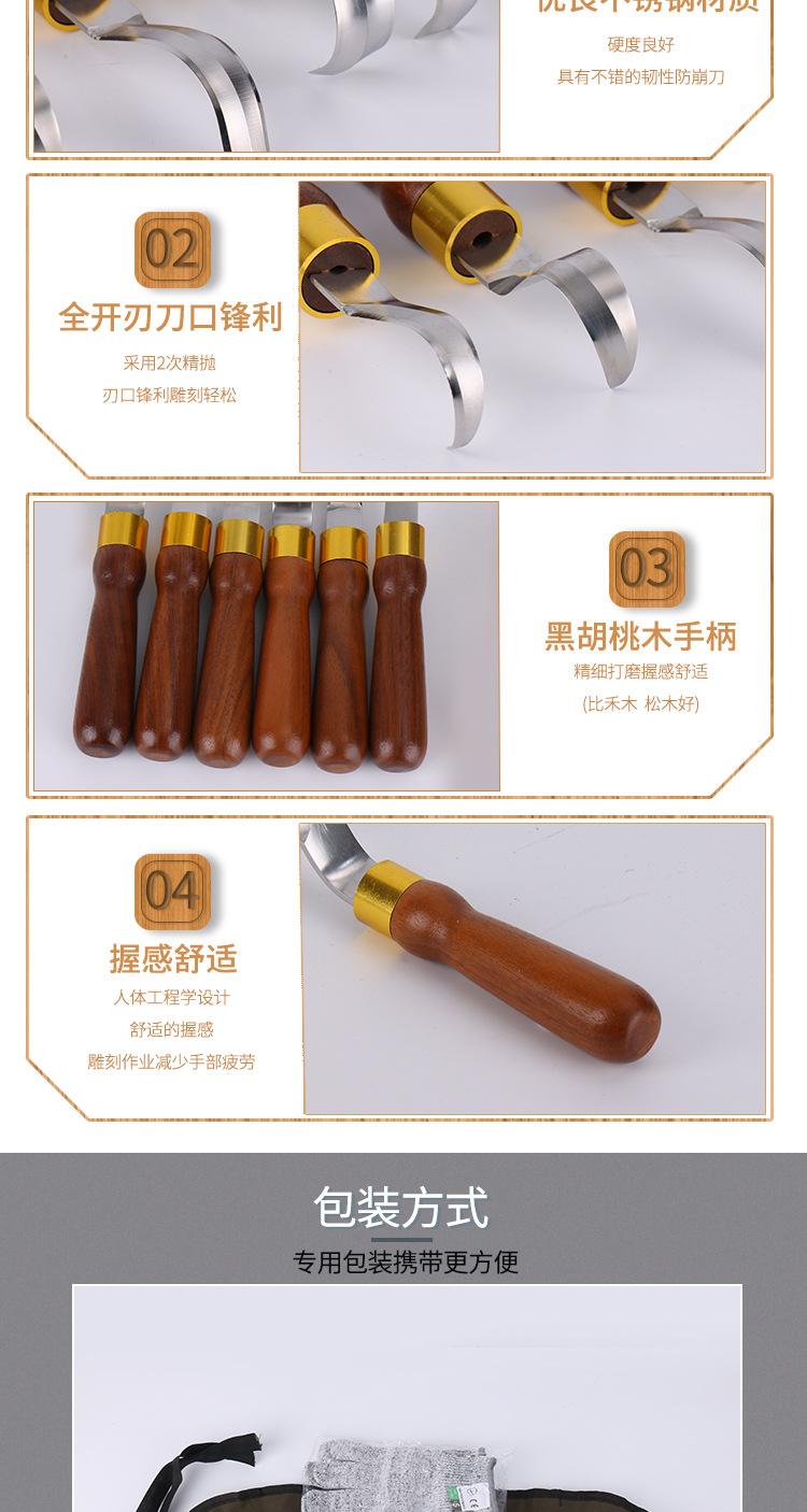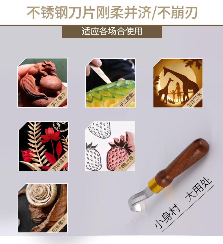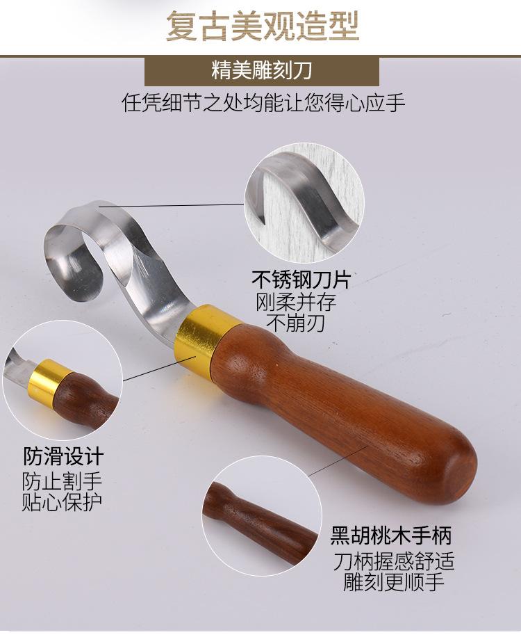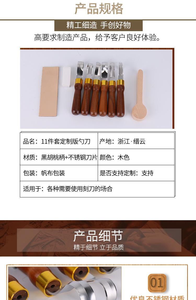 Juego de 11 piezas de hoja de acero inoxidable Mango especial de nogal negro Cuchillo cuchara Estudiante DIY Carpintería Cuchillo para tallar Venta al por mayor a granel
