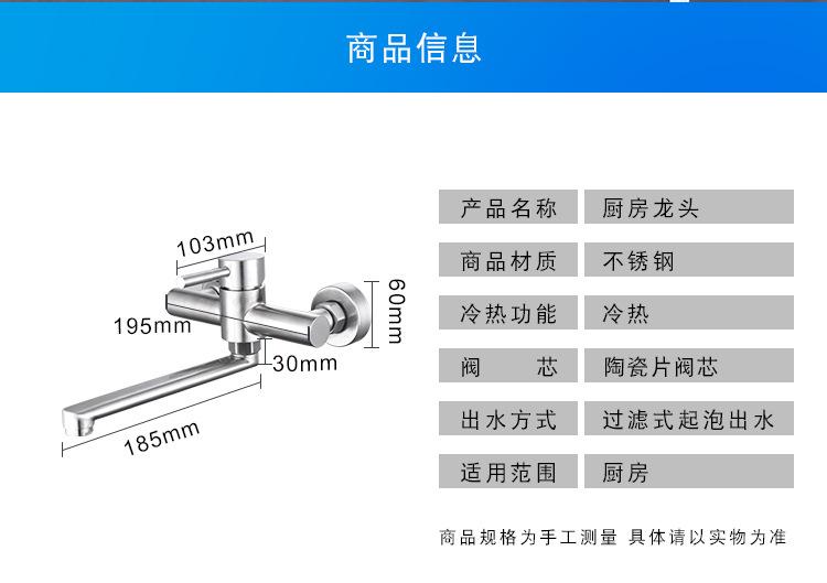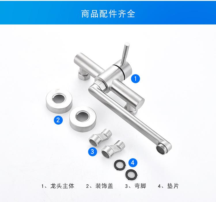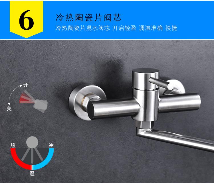 Grifo de cocina de acero inoxidable 304 para fregar piscinas, lavabos para verduras, balcones, lavaderos, grifo de agua fría y caliente montado en la pared.