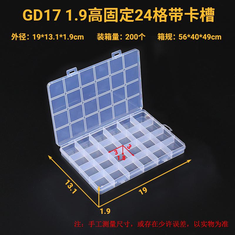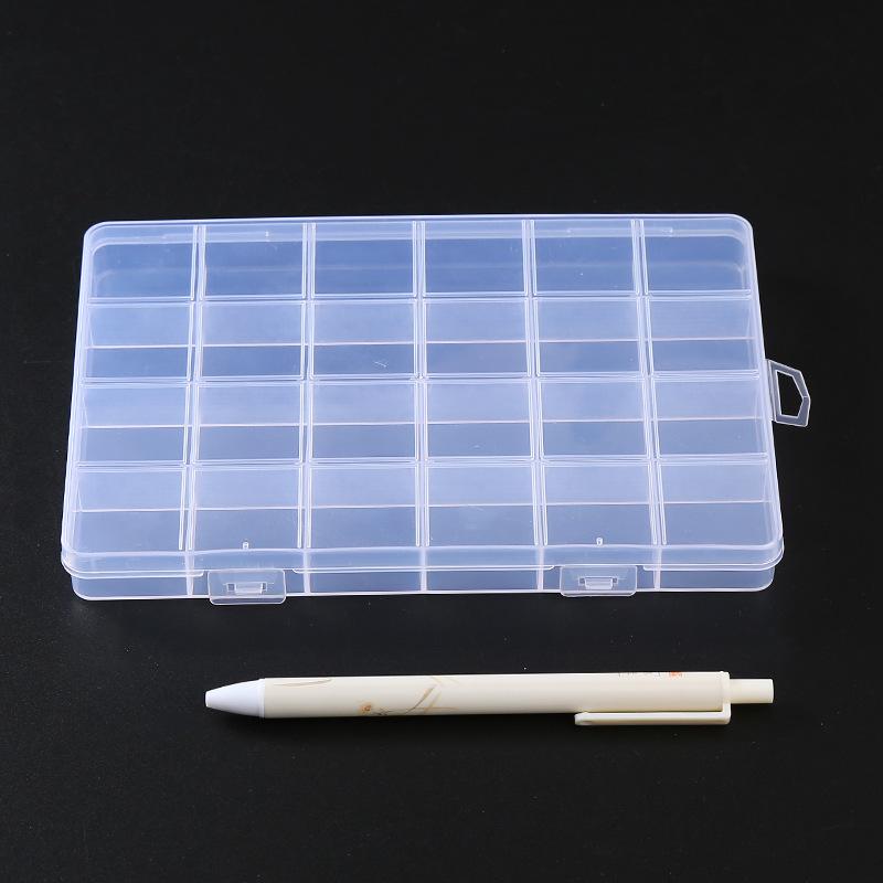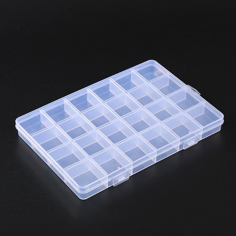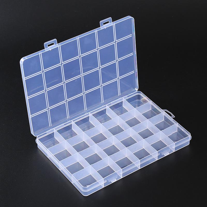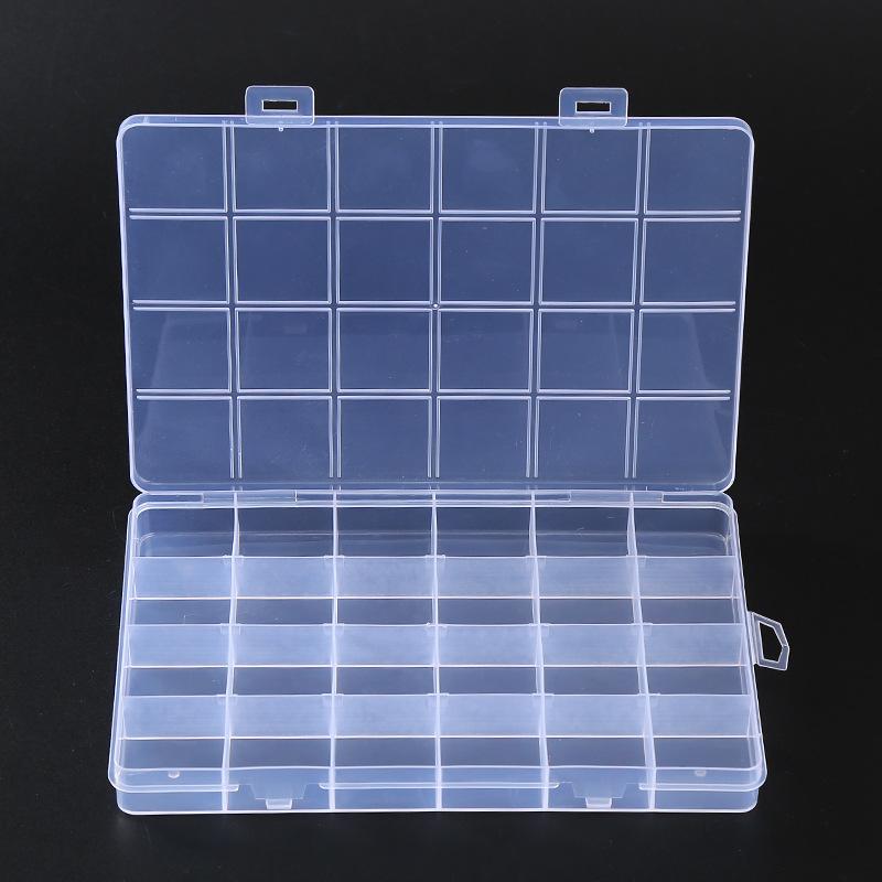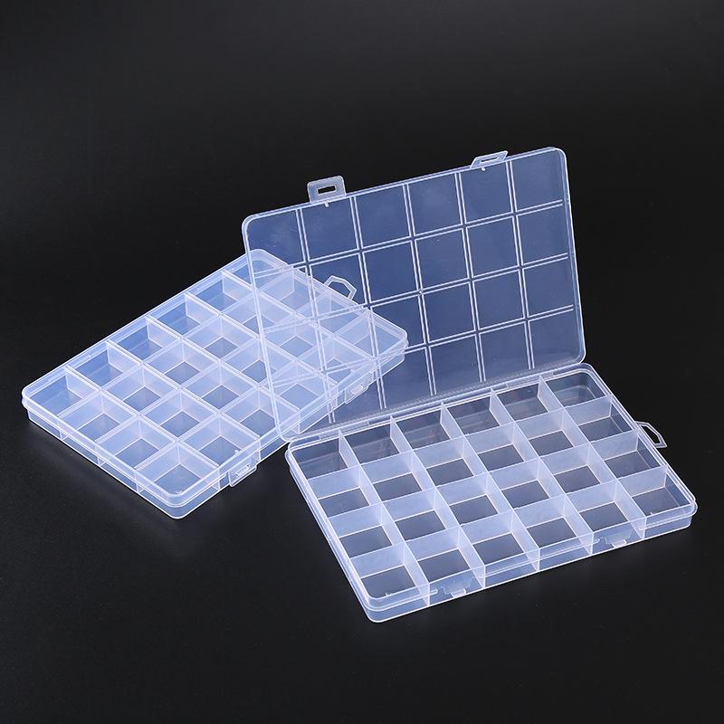 Caja de plástico transparente con 24 rejillas fijas, anti-hilos, para guardar joyas, con cuentas de arroz, diamantes y uñas.