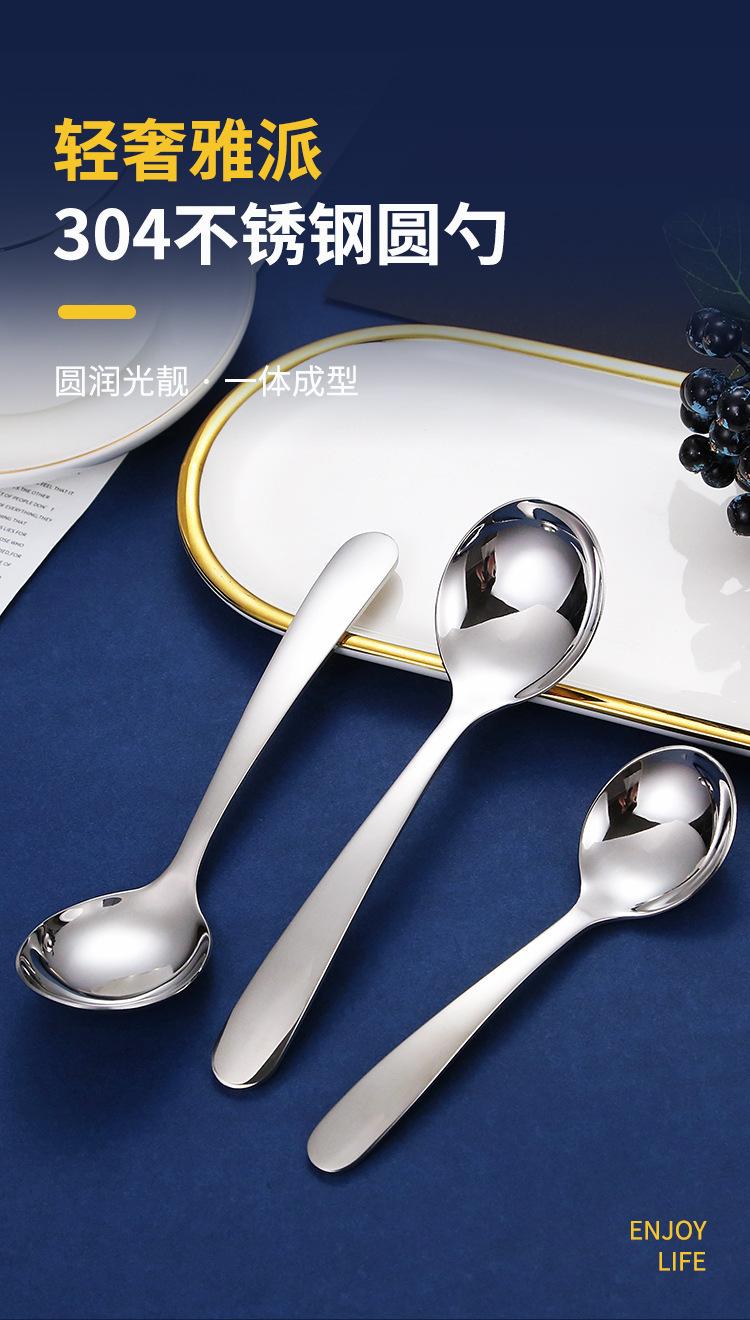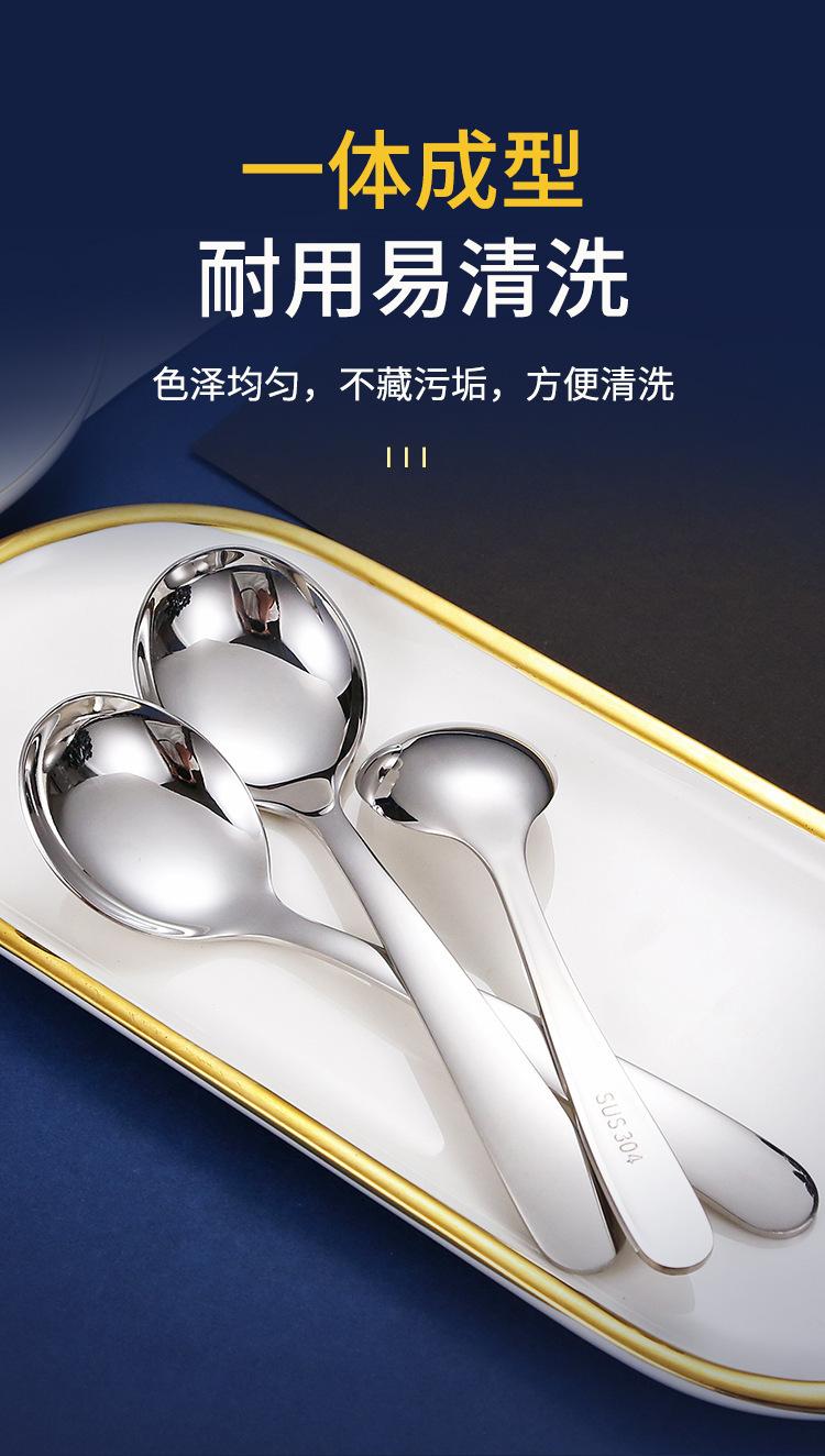 Cuchara redonda de acero inoxidable 304, cuchara para sopa espesa y profunda para hotel, cuchara de nido de pájaro, cuchara para el hogar, cuchara para mezclar postres y cenas.