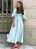 Vestido de verano 2023 de algodón y lino, corte A, escote en V, estilo festivo, informal, para ir al trabajo, para novias.