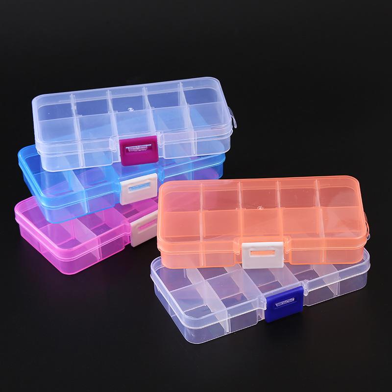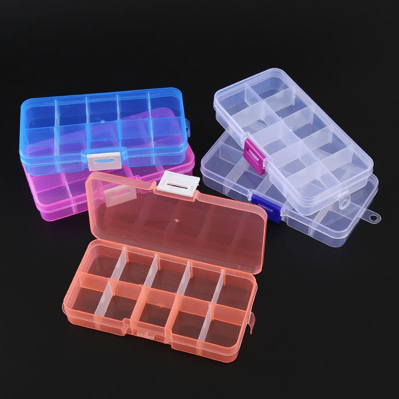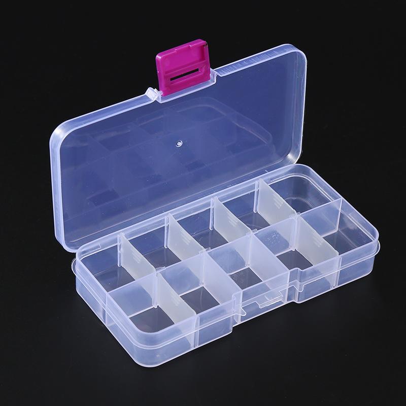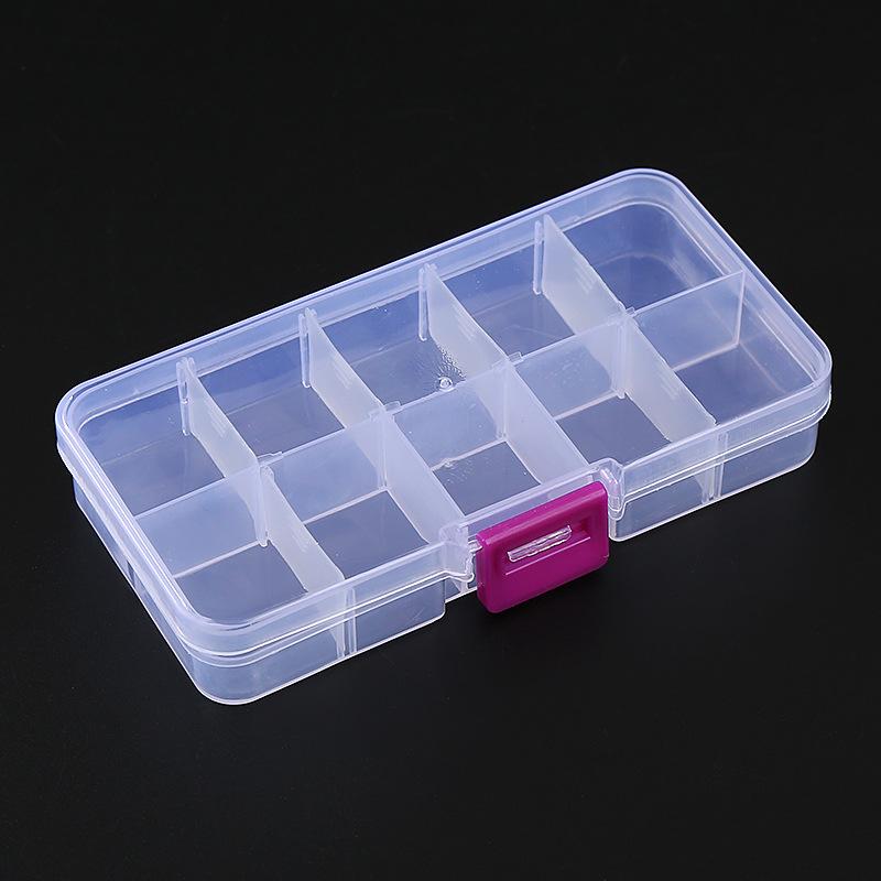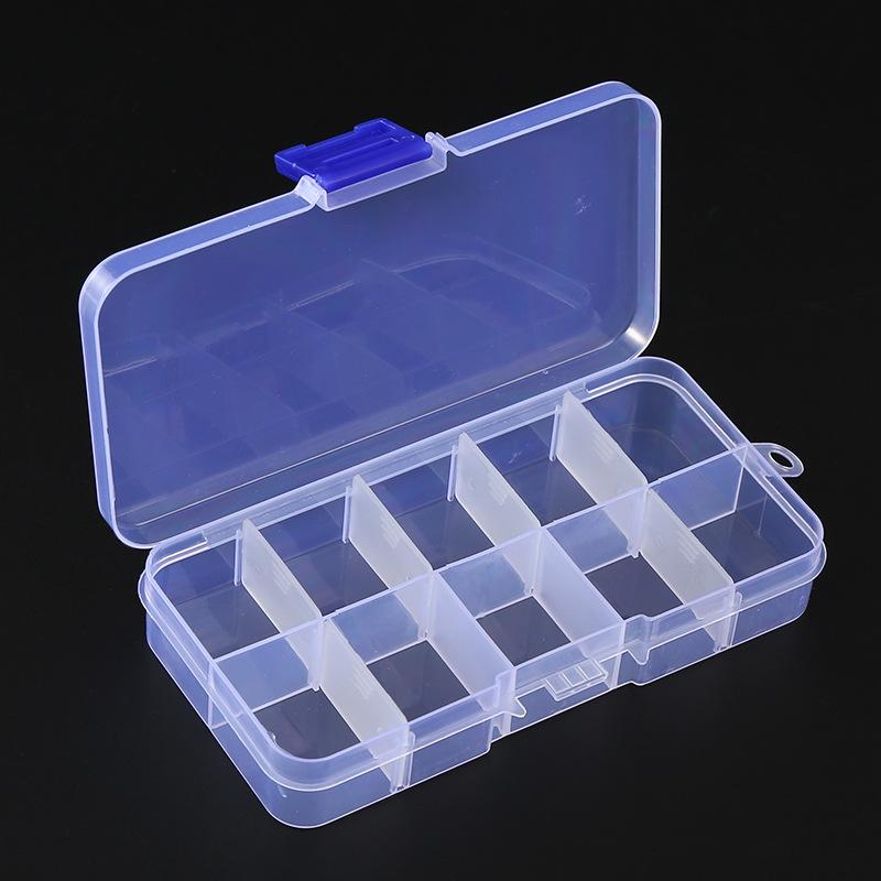 Caja de almacenamiento de plástico transparente con 10 cuentas de arroz pequeñas desmontables, piezas de joyería con cuentas, accesorios de pesca y juguetes, venta al por mayor de fábrica
