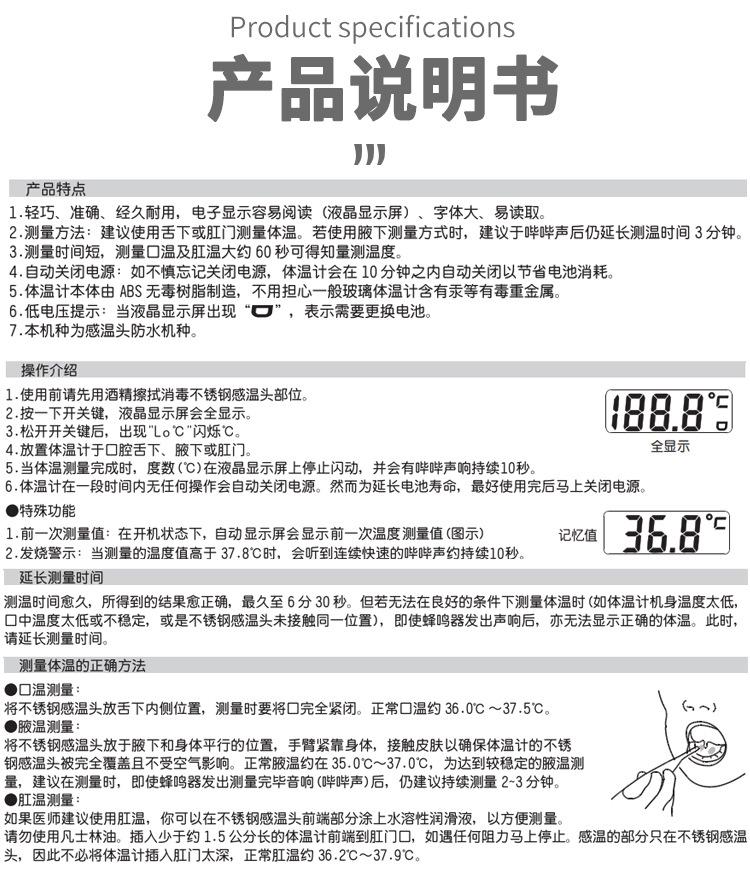 Termómetro médico de uso doméstico, resistente al agua, para bebés, termómetro electrónico oral axilar para exportación a Europa y América.