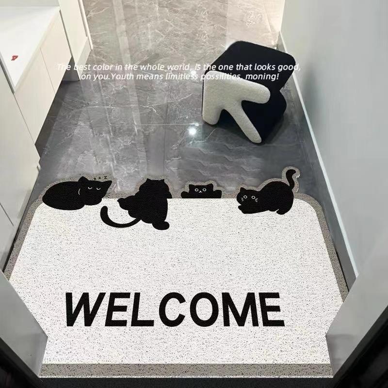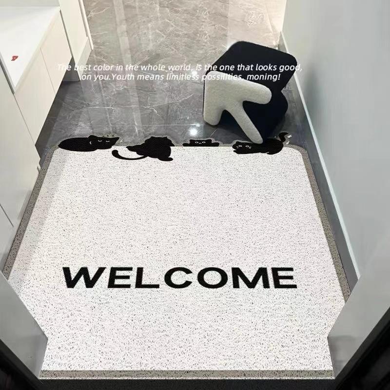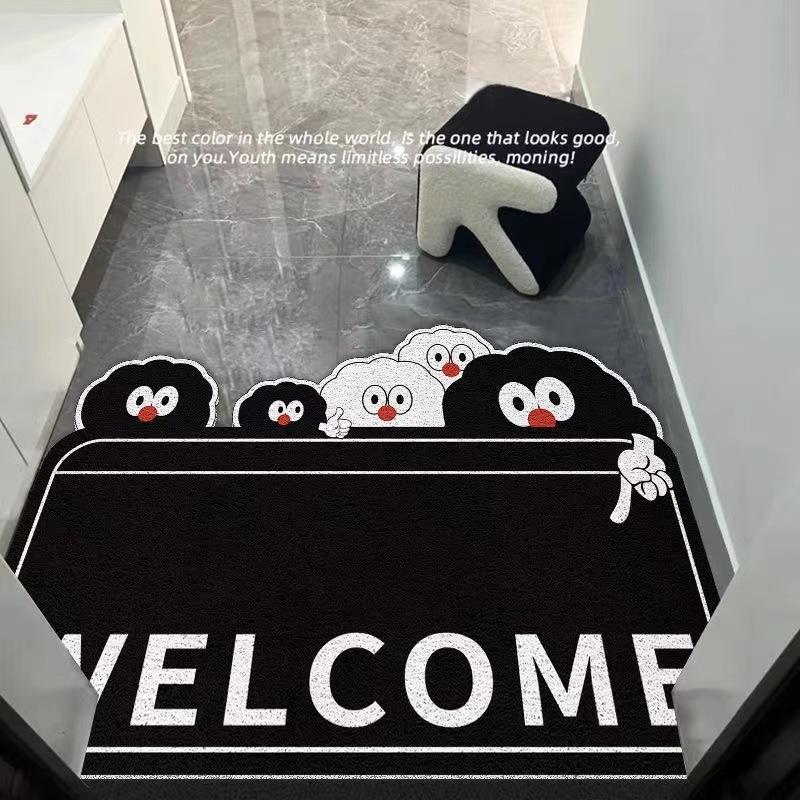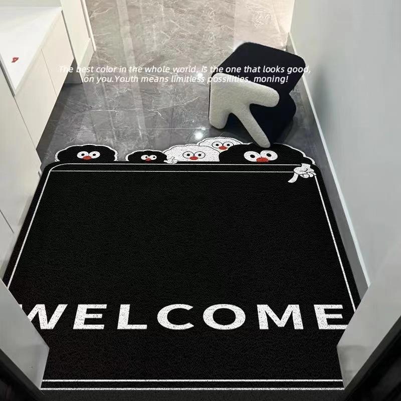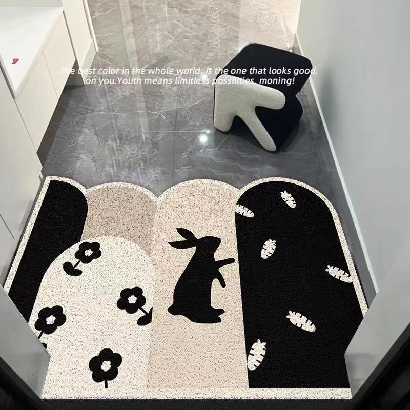 Felpudo creativo transfronterizo en blanco y negro con diseño ins para el hogar, resistente a las manchas, antideslizante, para la entrada del hogar