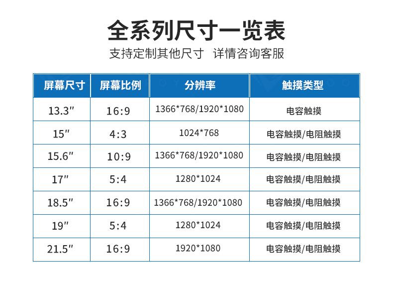 13.3 inches (1920*1080), 15 inches (1024*768), 15.6 inches (1920*1080), 17 inches (1280*1024), 18.5 inches (19...