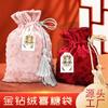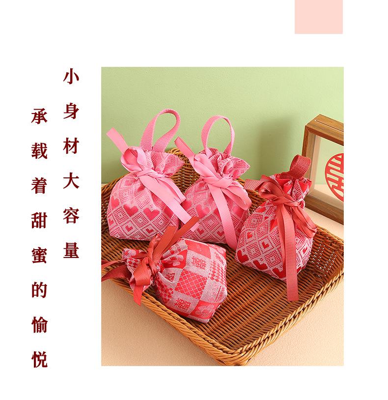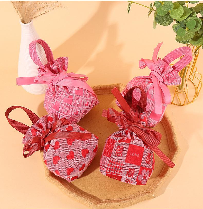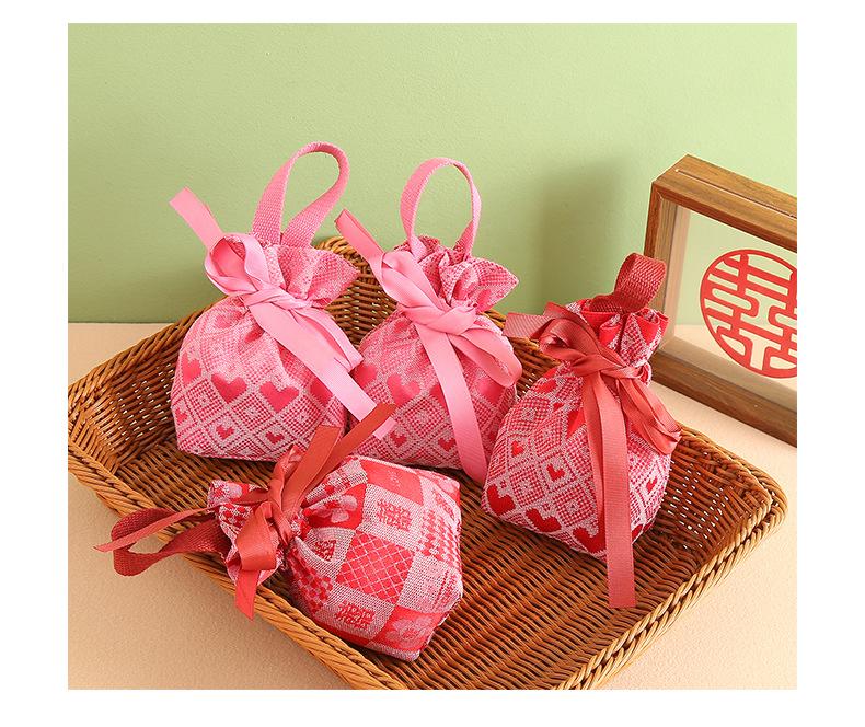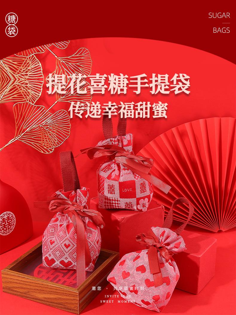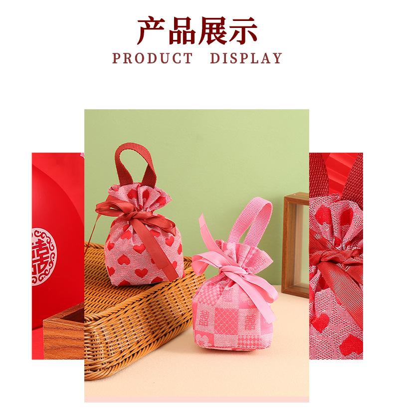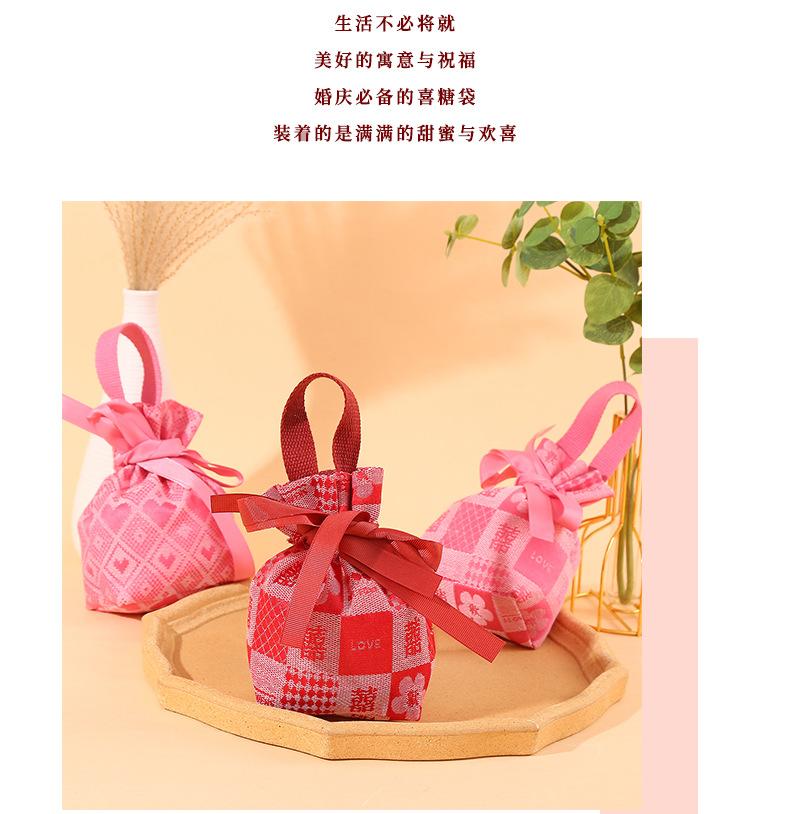 Bolsa de dulces para regalo de boda al por mayor en stock, bolsa de boda portátil de franela con cordón, regalo de estilo chino