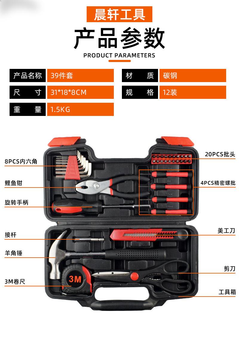 Juego de herramientas para el hogar de 39 piezas personalizado Juego de caja de herramientas de ferretería para el hogar transfronterizo