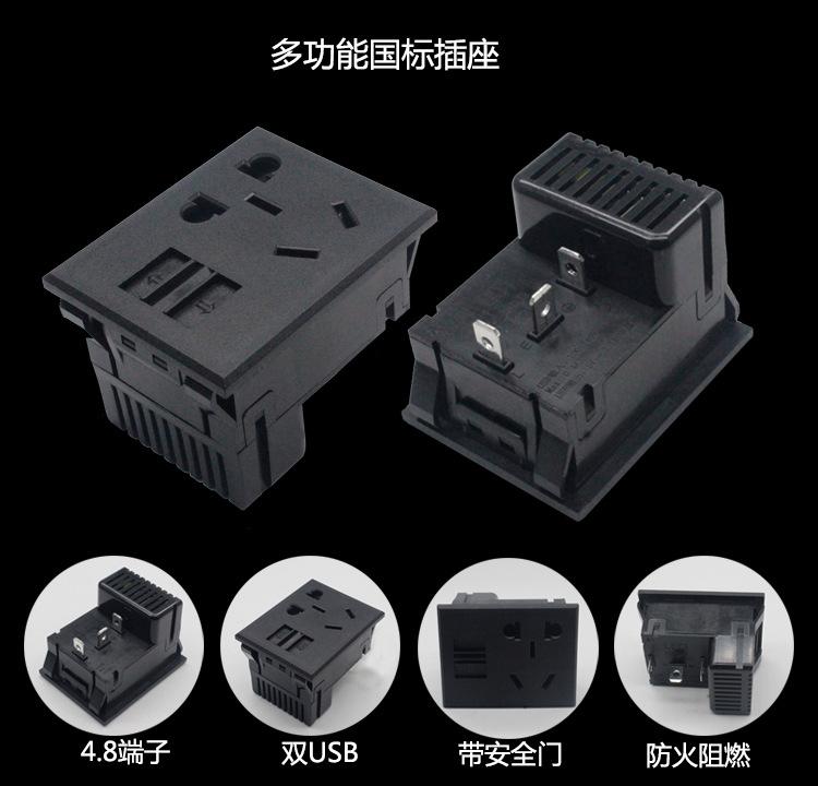Nuevo enchufe inteligente de cinco orificios estándar nacional con doble puerto de carga USB en la pared, puerta de seguridad protectora, inserción de enchufe de cinco orificios