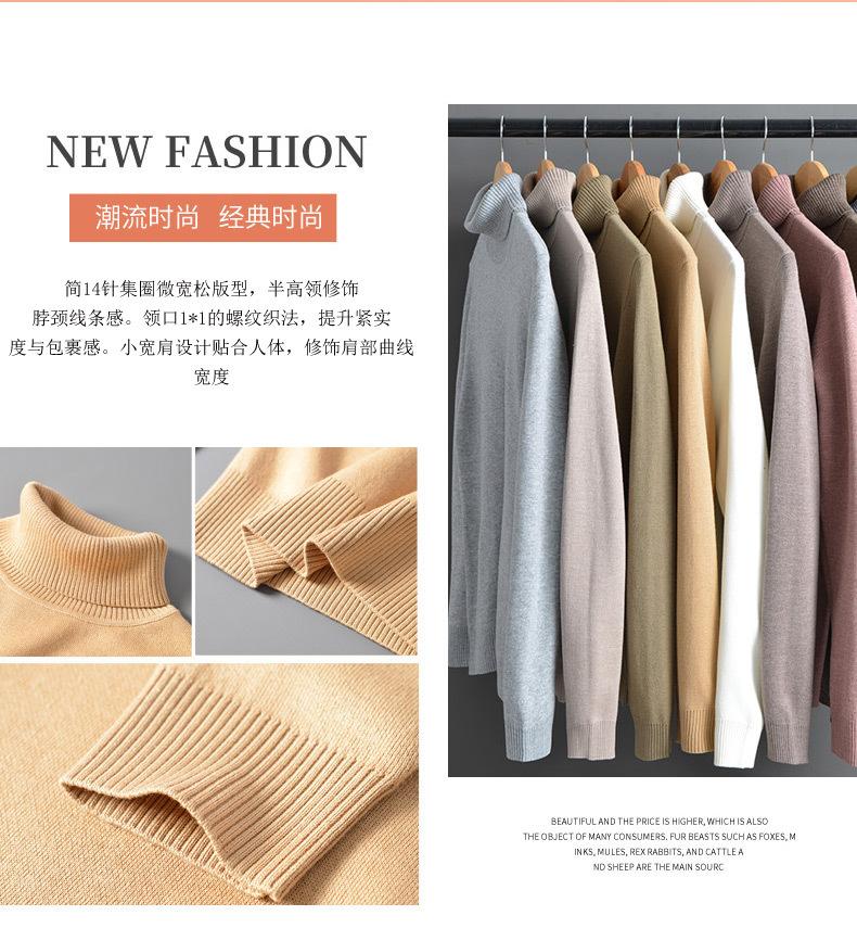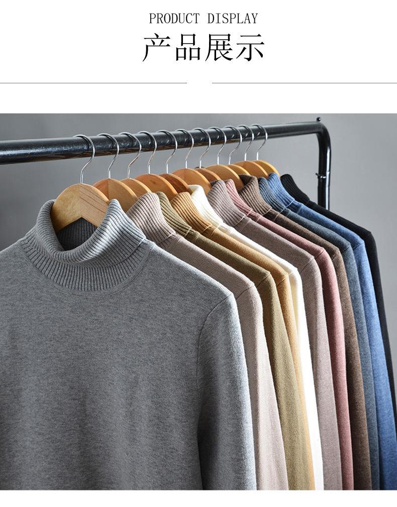 Suéter de cuello alto para hombre, ropa interior de otoño e invierno, informal, de negocios, ajustado, cálido, de punto, de color sólido