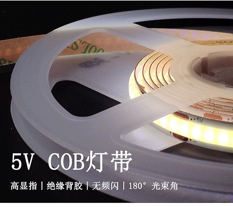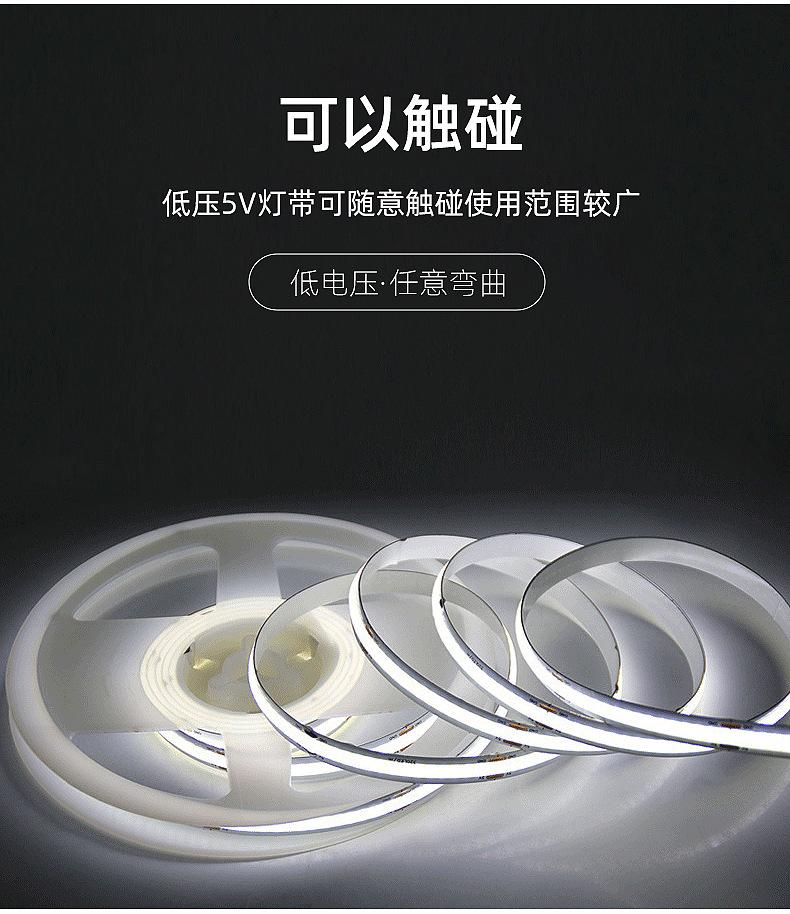 Adhesivo luz 5vcob de baja presión con tira LED autoadhesiva 3-8mm ultradelgada USB estroboscópica para el hogar luz de ambiente flexible