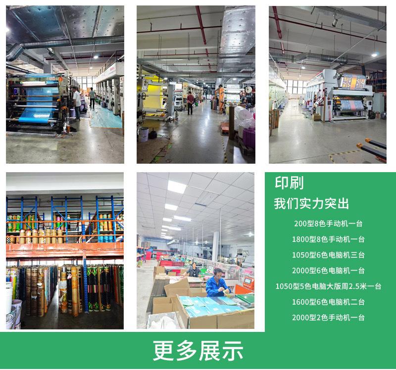 Actualización de equipo: Equipado con más de 20 equipos de alta tecnología líderes en la industria, incluyendo máquinas de impresión de alta precisión de seis colores y ocho colores, máquinas sopladoras de película de alta eficiencia y máquinas para fabricar bolsas totalmente automáticas, garantizando la precisión y eficiencia de la producción;