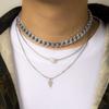 Collar cubano apilado de doble capa, largo y sencillo, de marca de moda hip hop para hombre, diseño sencillo de calle, collar que combina con todo.