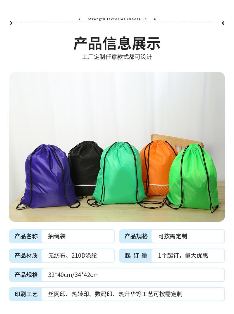 Mochila de cordón de tela no tejida para eventos deportivos de maratón, costuras personalizadas, bolsa de baloncesto en blanco