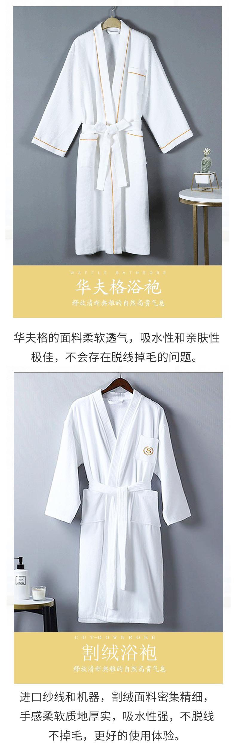 Albornoz de hotel, albornoz de lino de algodón y terciopelo, albornoz largo tipo gofre, albornoz bordado al por mayor de fábrica con logotipo.